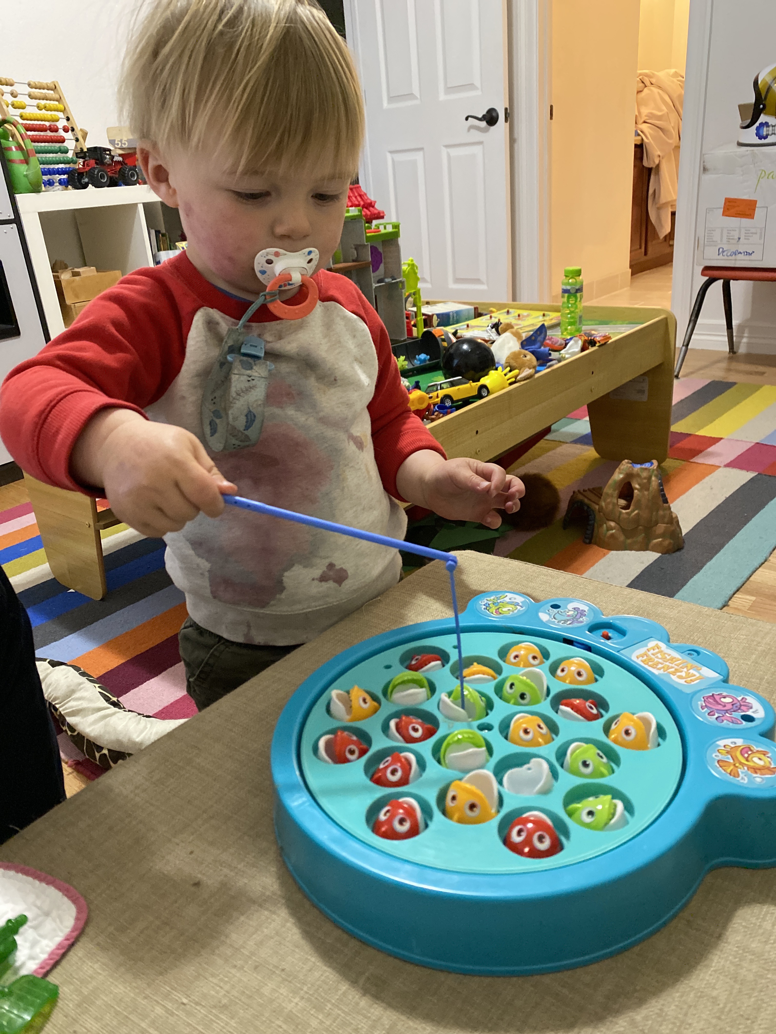 We spent 25 minutes doing nothing but throwing rocks and two tennis balls into the puddle. This is one of his favorite things to do. I sit patiently, handing him rocks to throw (the bigger the better) and retrieving the tennis ball. He claps for himself after throwing a large stone.