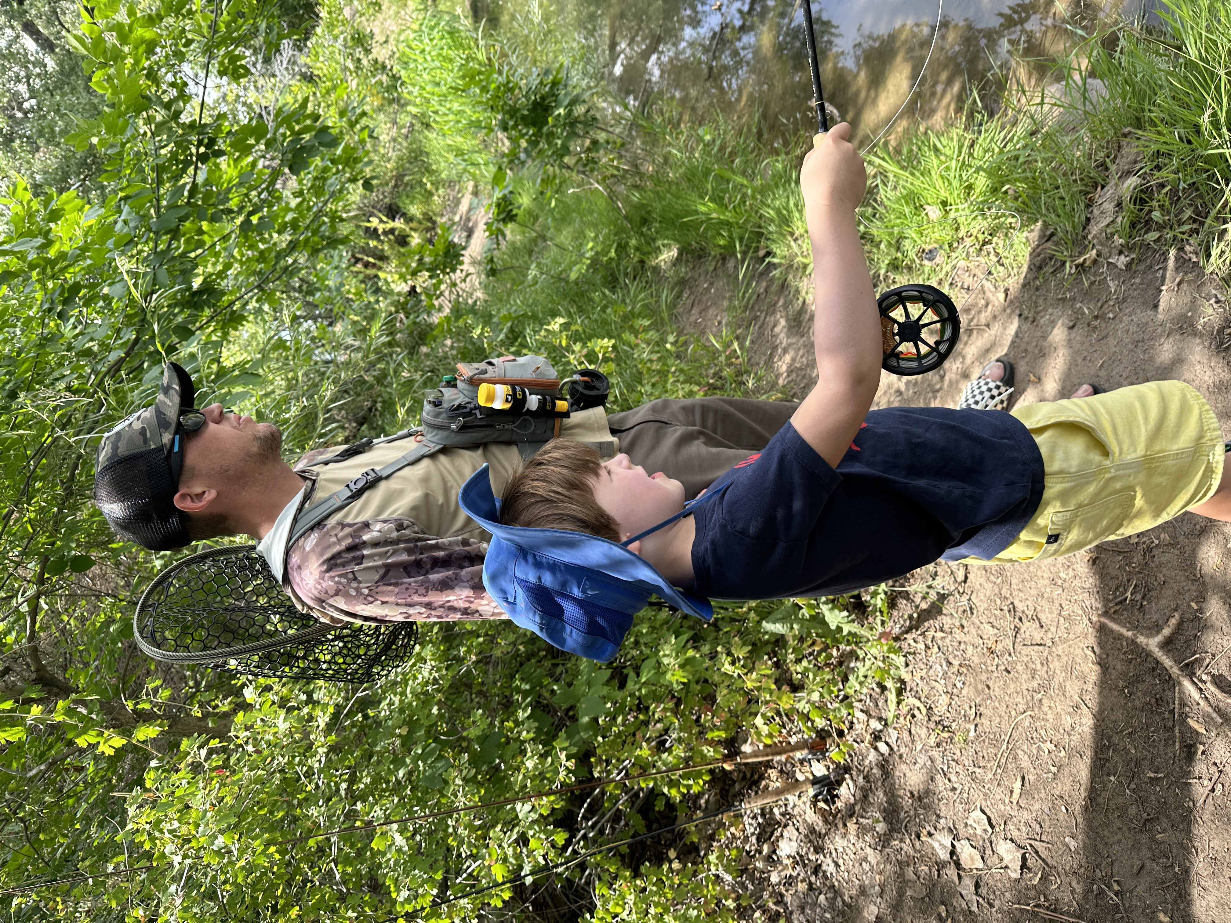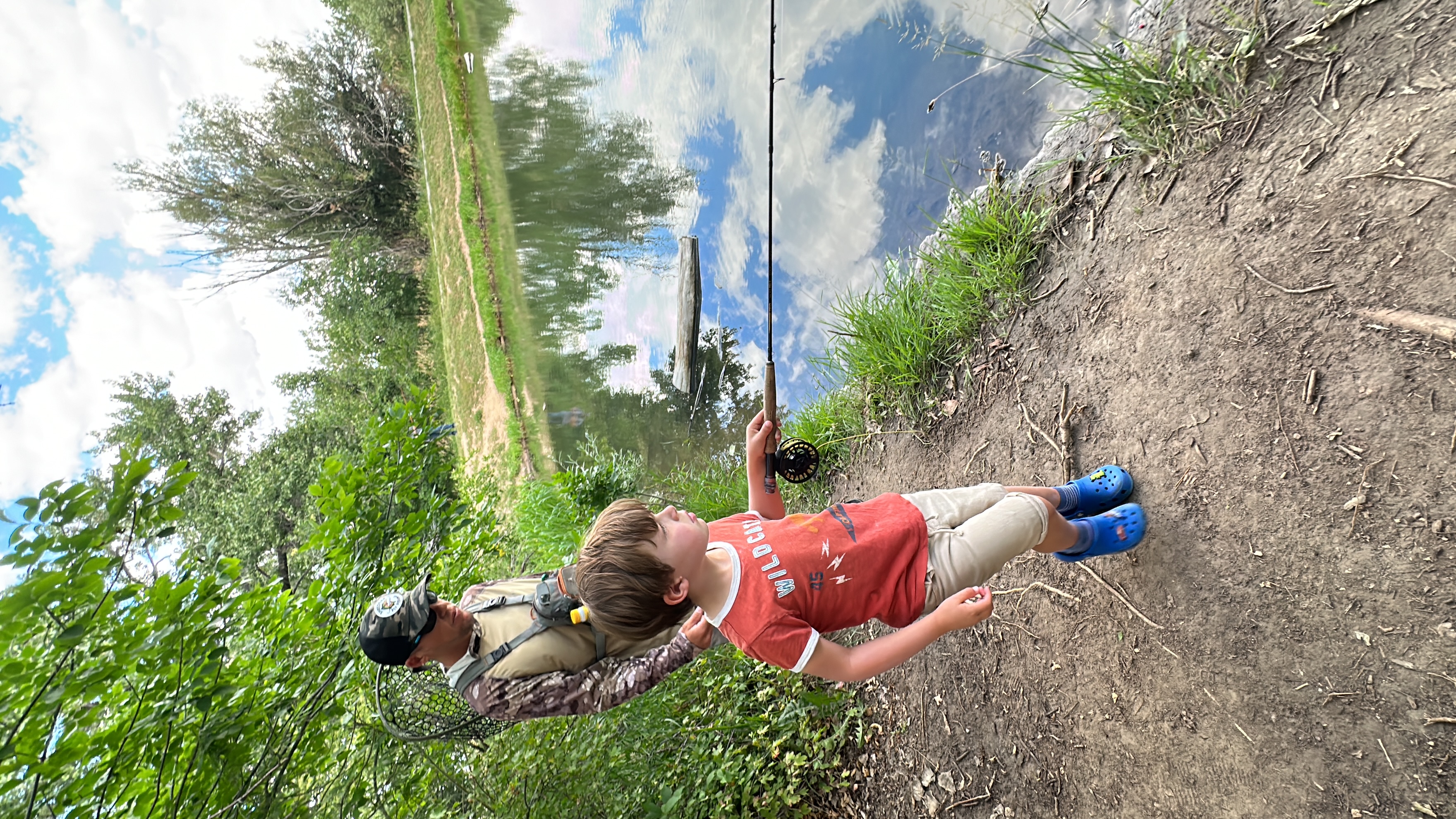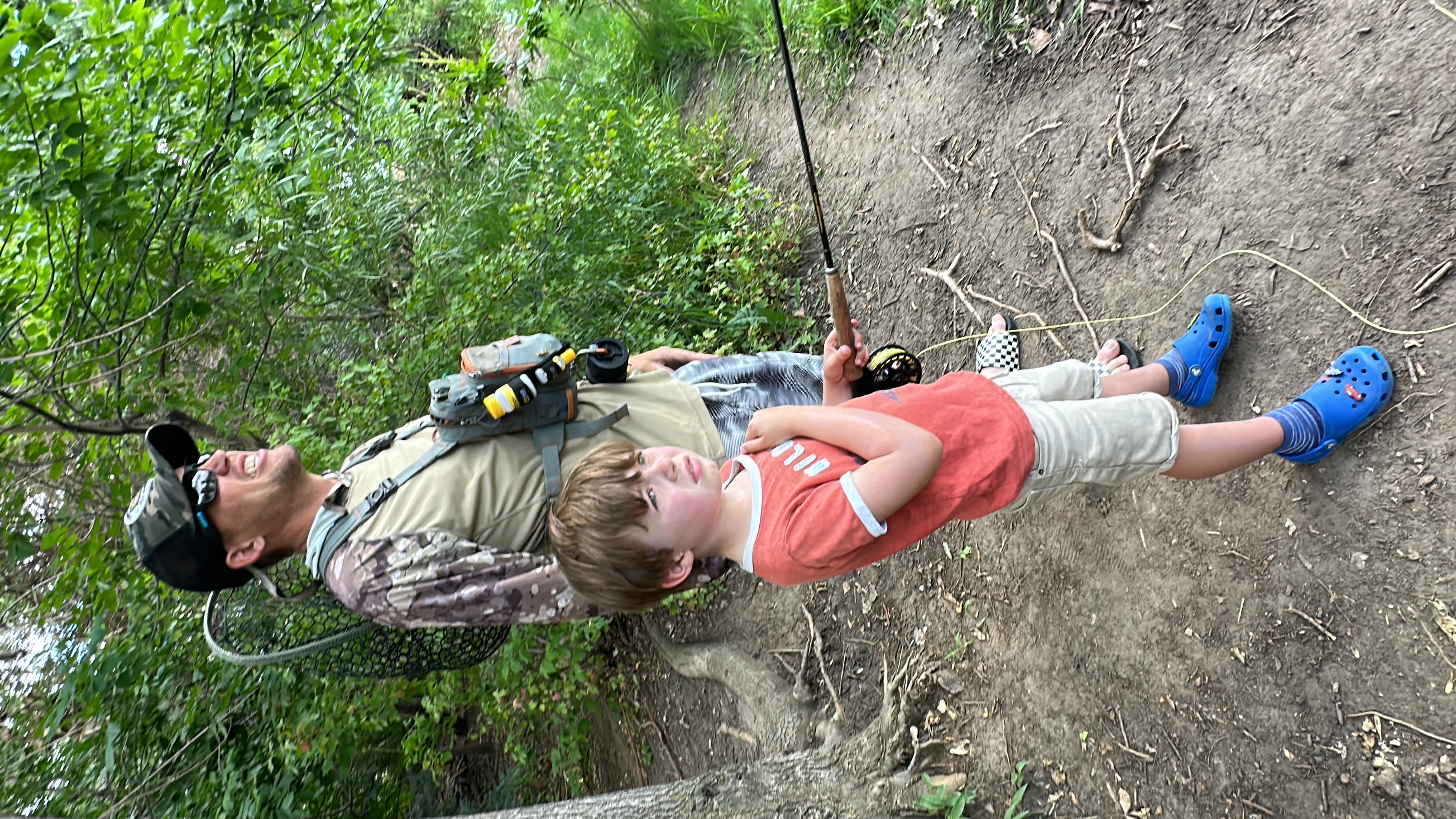 Aug 7, 2023. I stopped by during lunch break at Shredder Fishing Camp today at the Flying-B Ranch. Last year it was in a nicer location, Lair O the Bear Park, but much farther away. I could not have stopped there for lunch but this is only 10 minutes from home. Elliot is having fun! He already caught 3 Bluegills and 1 Catfish. He loved the catfish, said it was pretty and had nice whiskers. A hawk landed close by and did not seem to care about all of the people nearby!