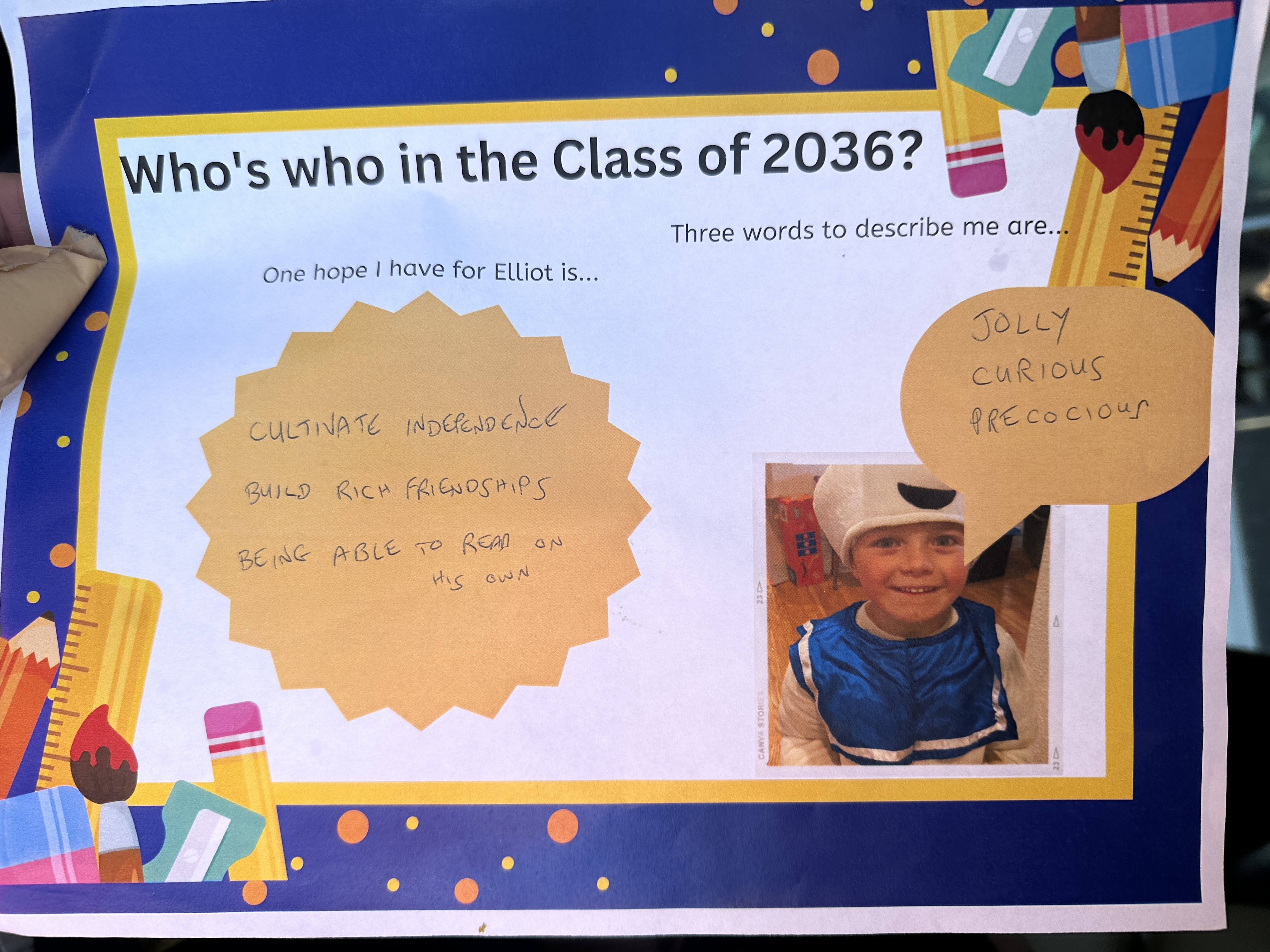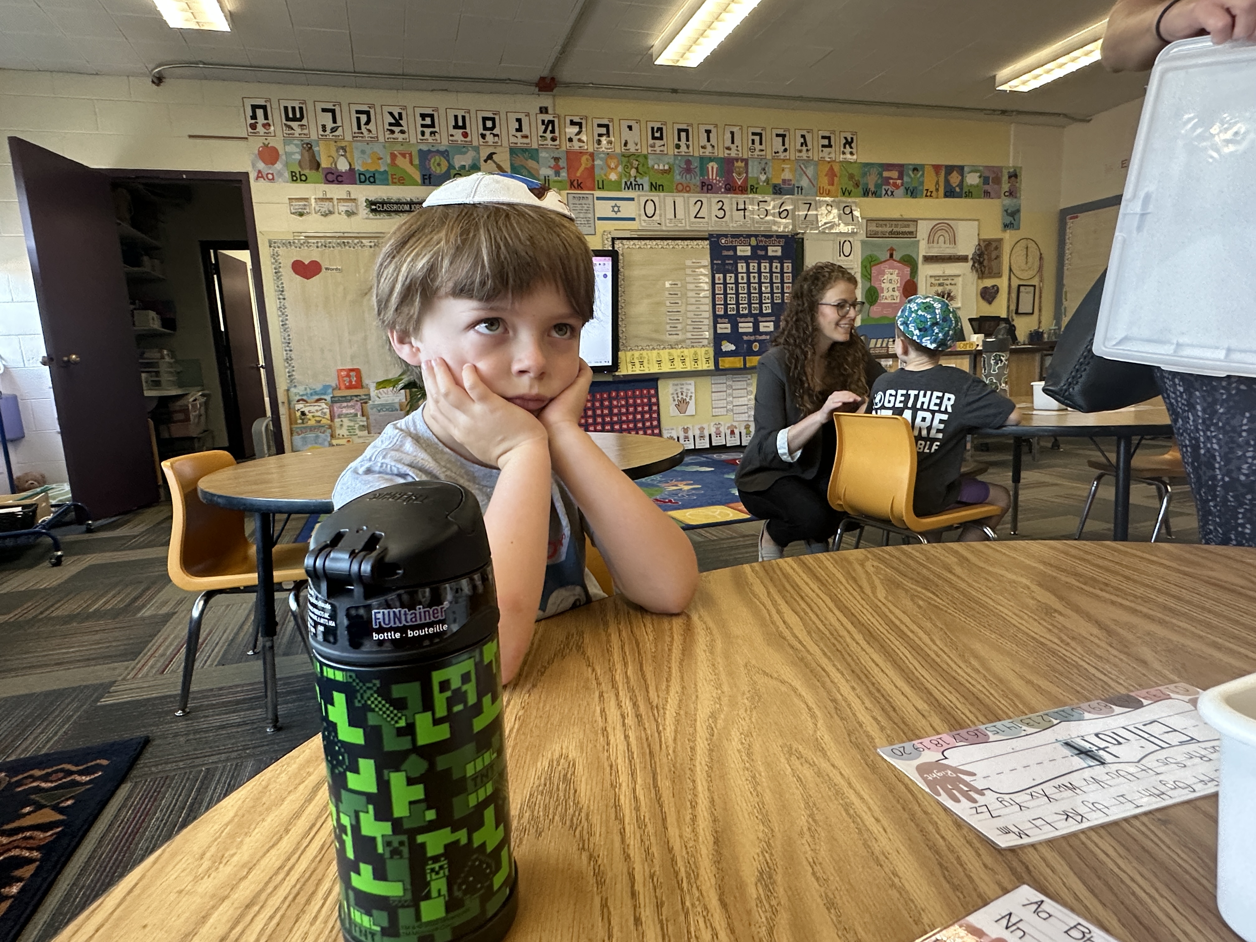 Elliot told me in the morning, “Thank you for bringing me to Kindergarten early.” I said you’re welcome and ask him why it was important. “Because I get to do the circle with other kids in the morning. Aviva missed it.” When I asked if he missed it, too, he said yes, he has missed it.