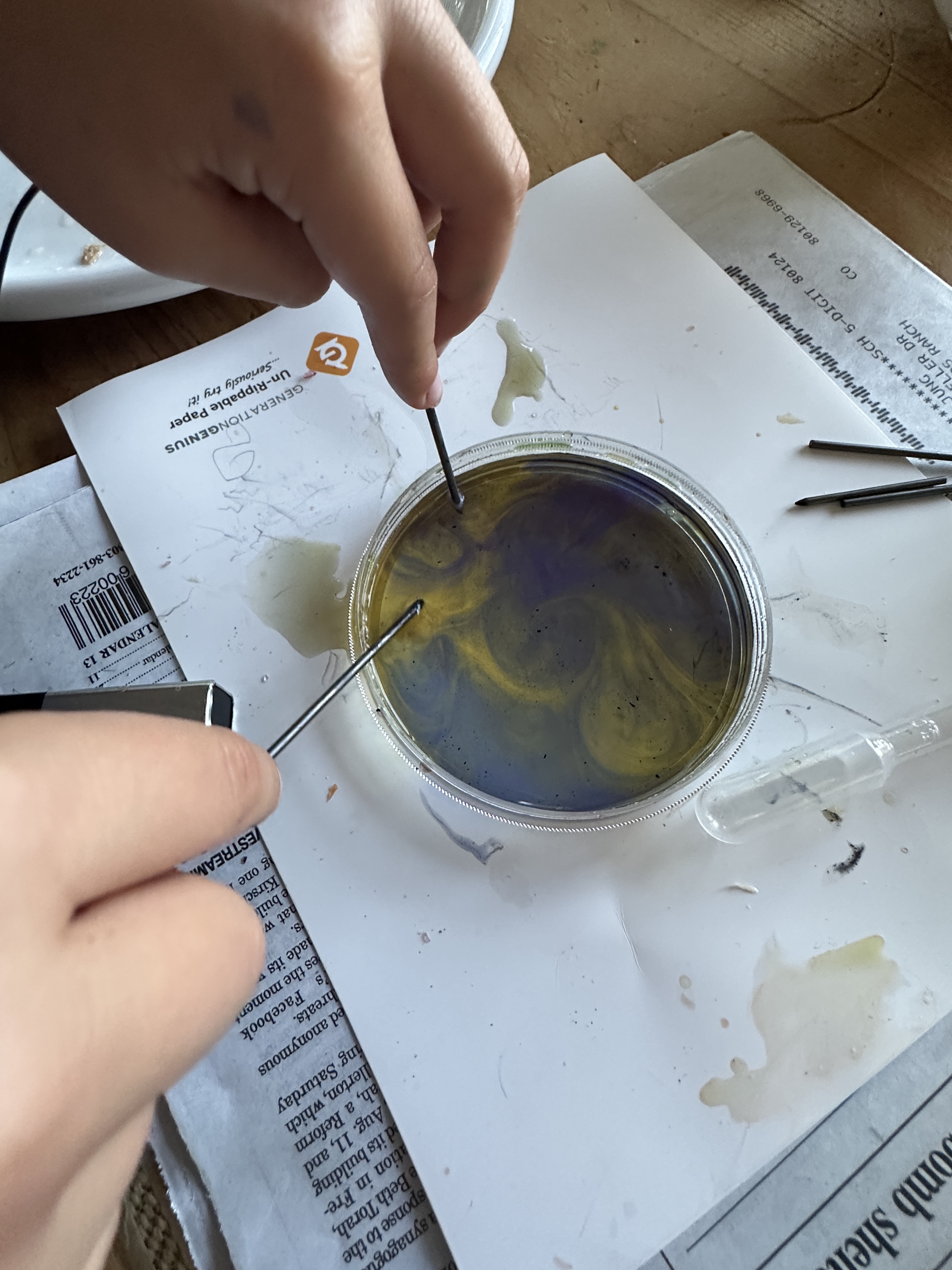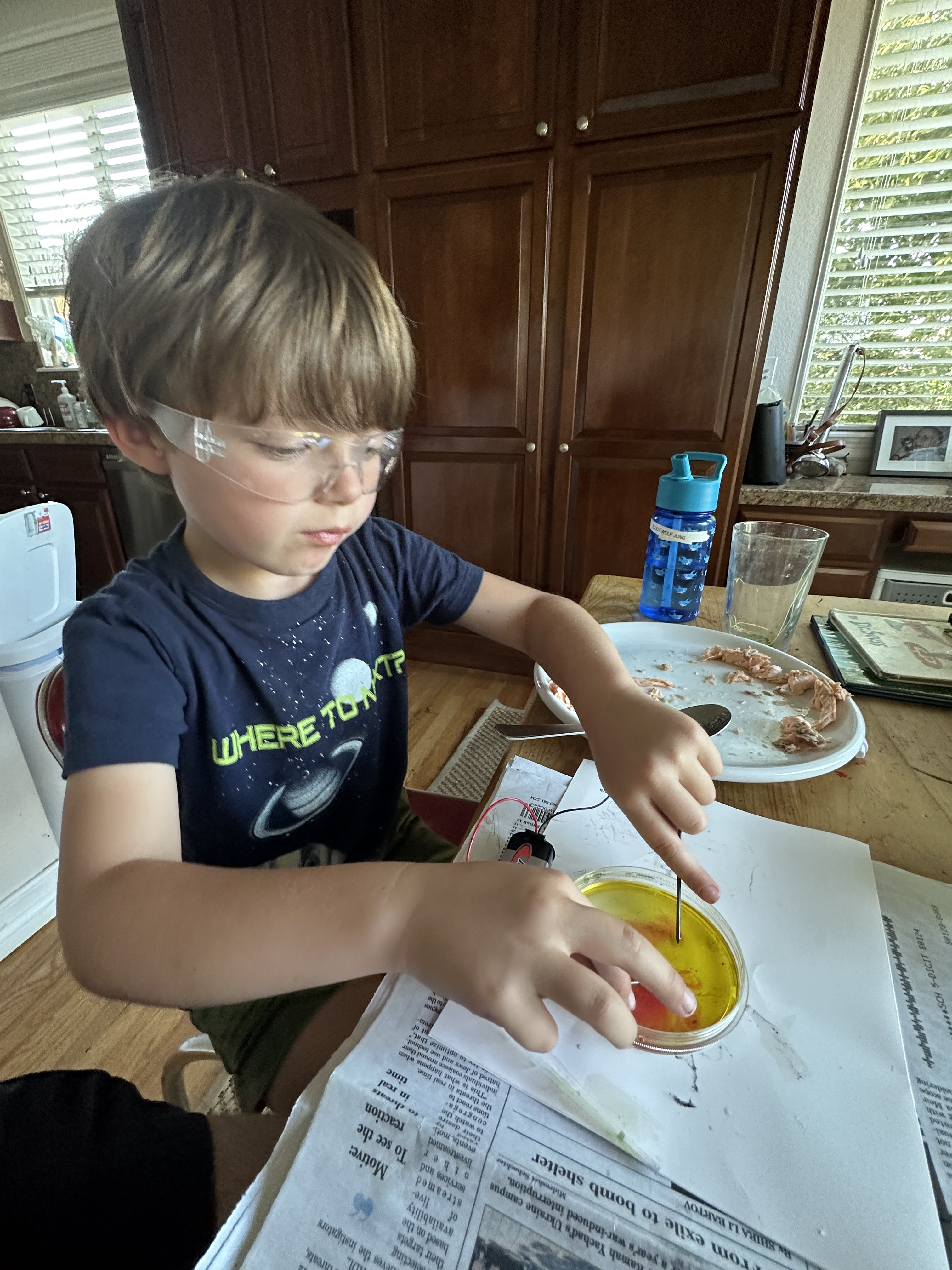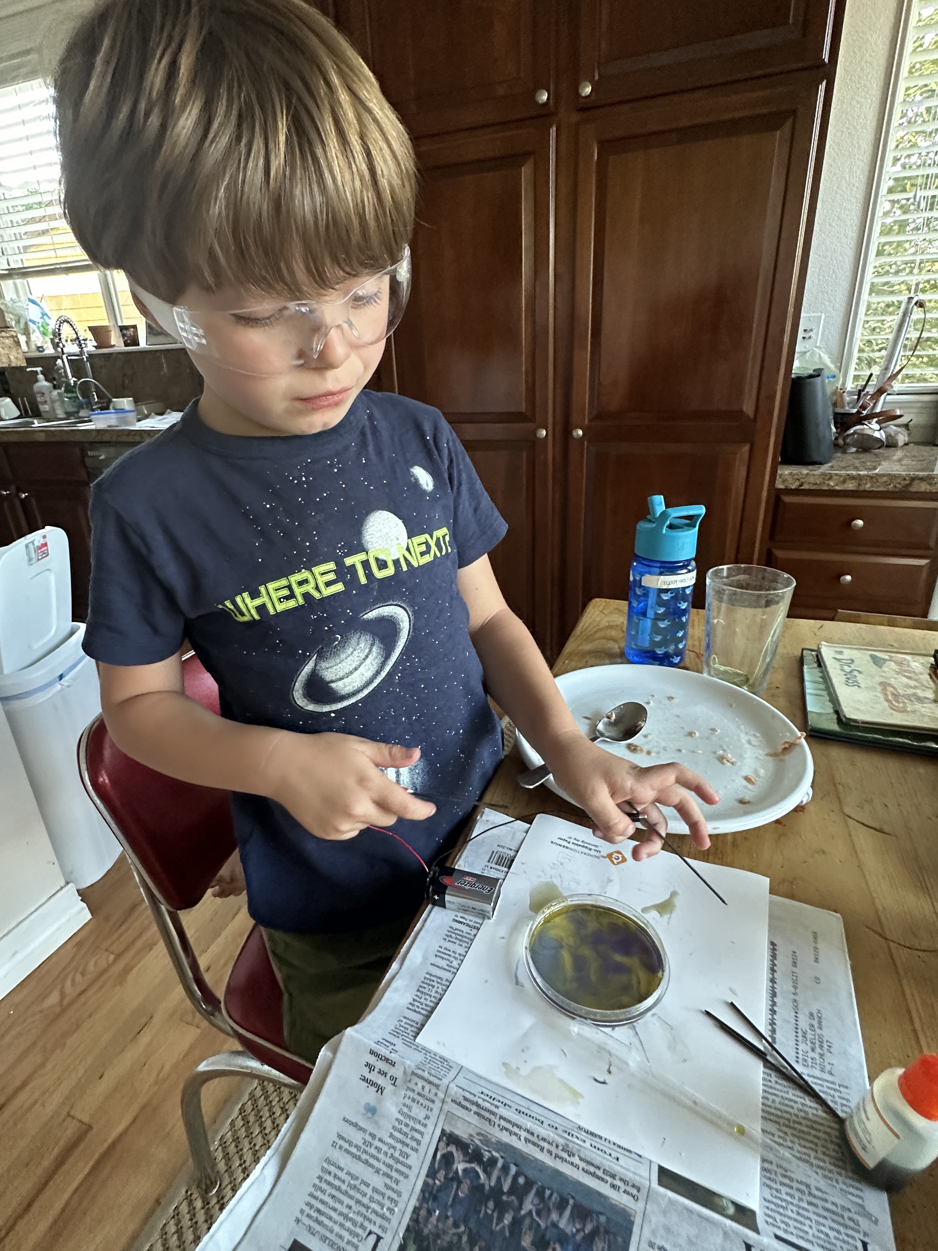 Then we did science experiment #5 from Generation Genius – RainbowElectrolysis.