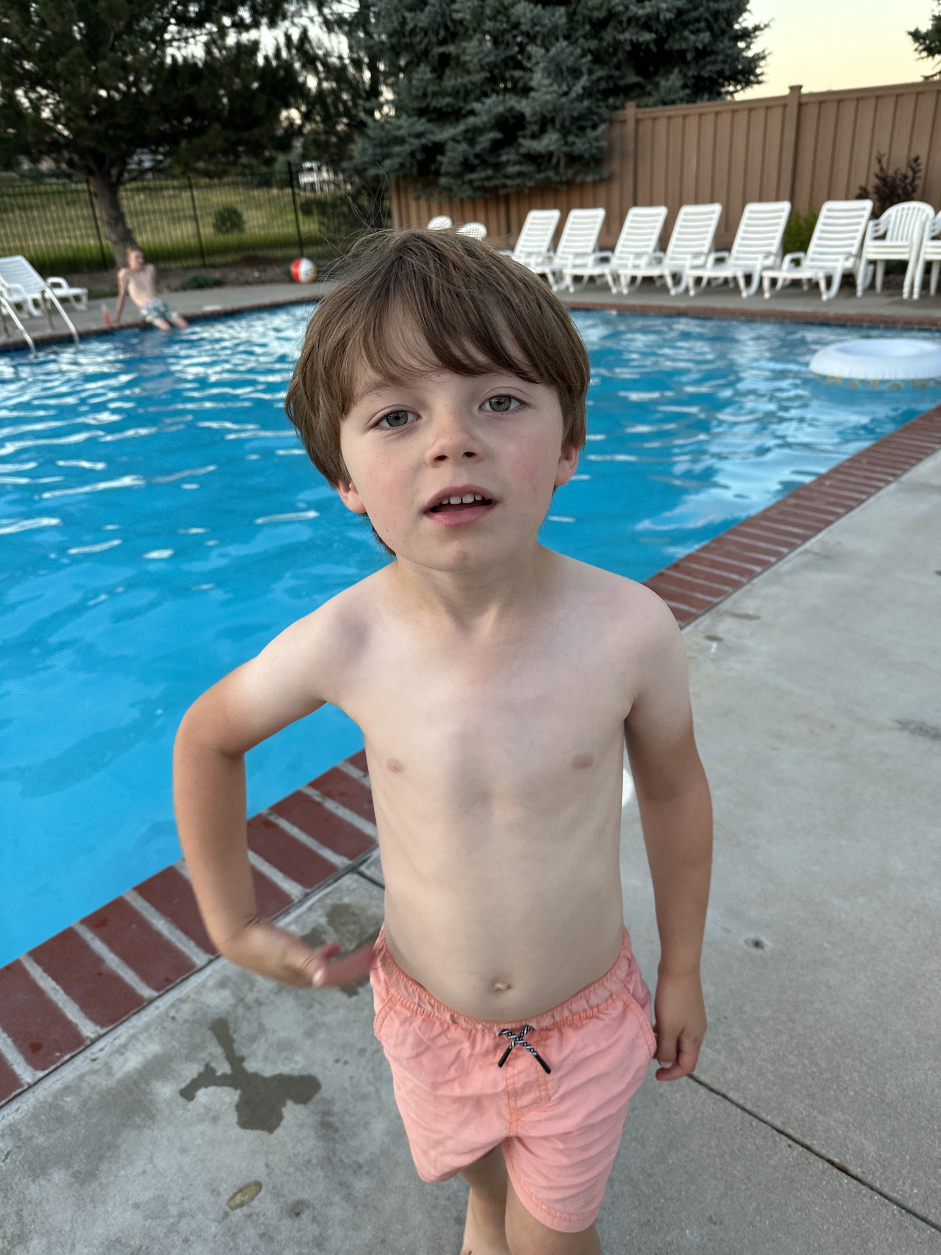 Last evening at the pool, Elliot was playing with a boy named Zach. His father, Brett, was there. Elliot explained that he does not eat eggs that have blood because he’s Jewish. He also said he does not eat hot dogs and ice cream together because he is kosher.