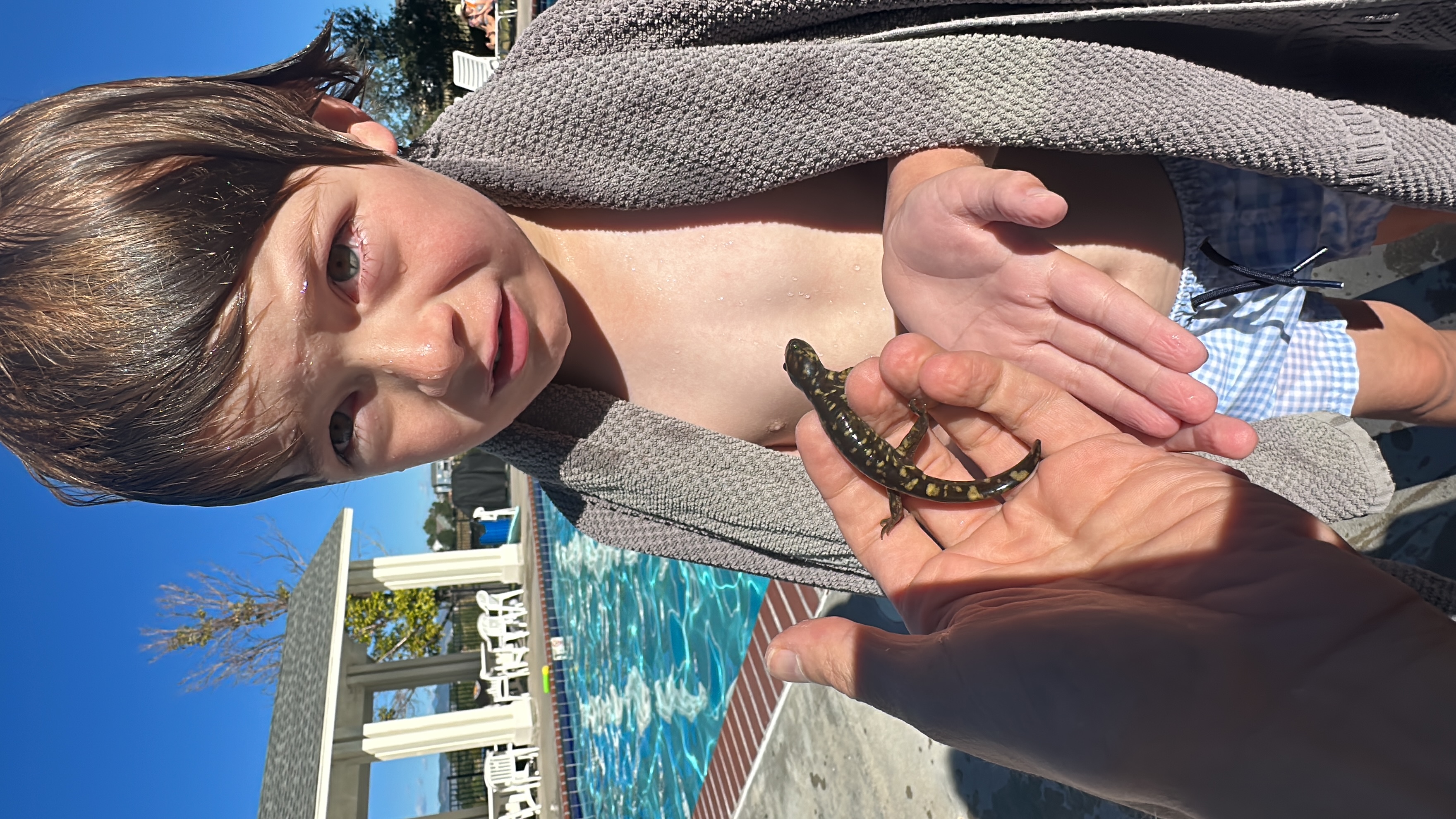 “Daddy, this is the most beautiful creature I ever, ever saw … Wow, I never saw a beautiful salamander. This is a really cute guy. Maybe we can … HAHAHAHAHAHAHA!”