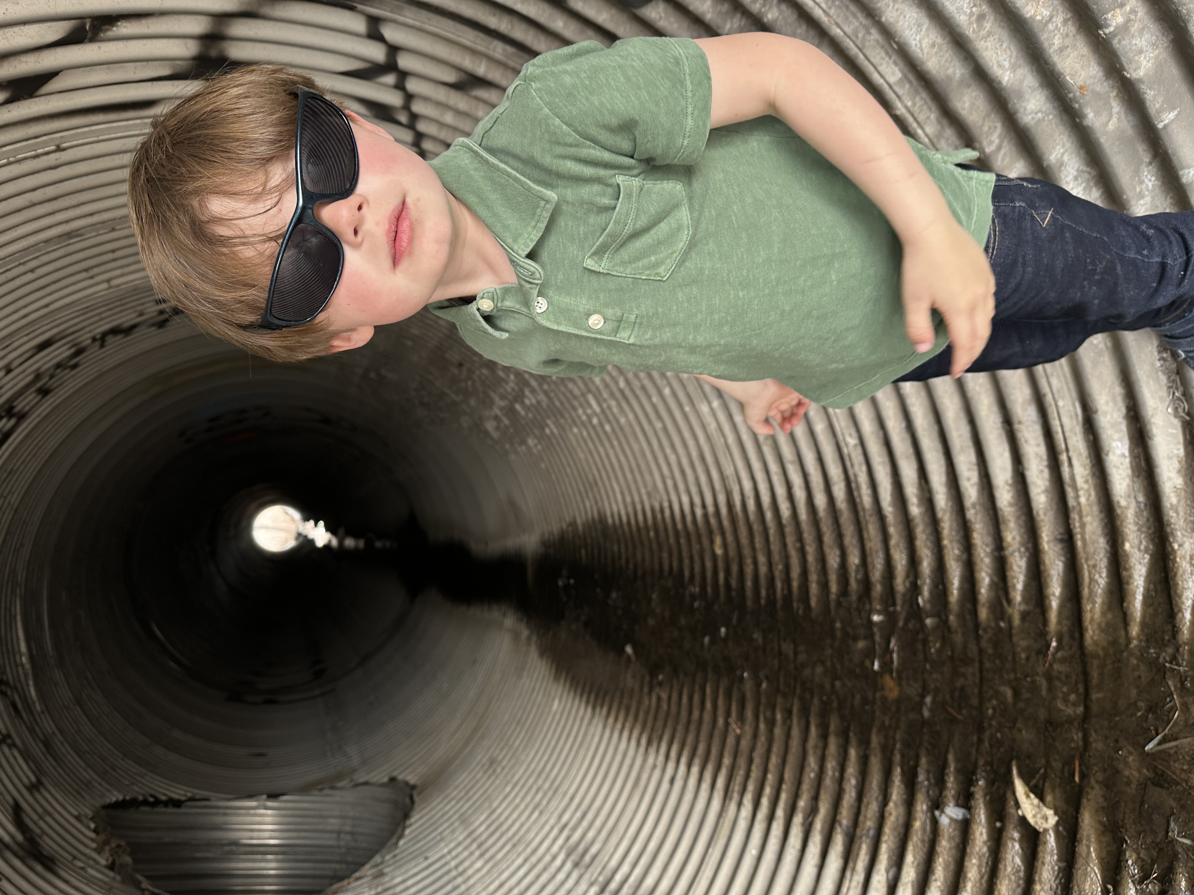 Adventure to the Gobling King’s tunnel (culvert), then King Soopers. Elliot was in the wagon the whole time, and I pulled. A lot of work! He’s somewhere between 45-50 pounds now. I ran about 1/4 of a mile of it.