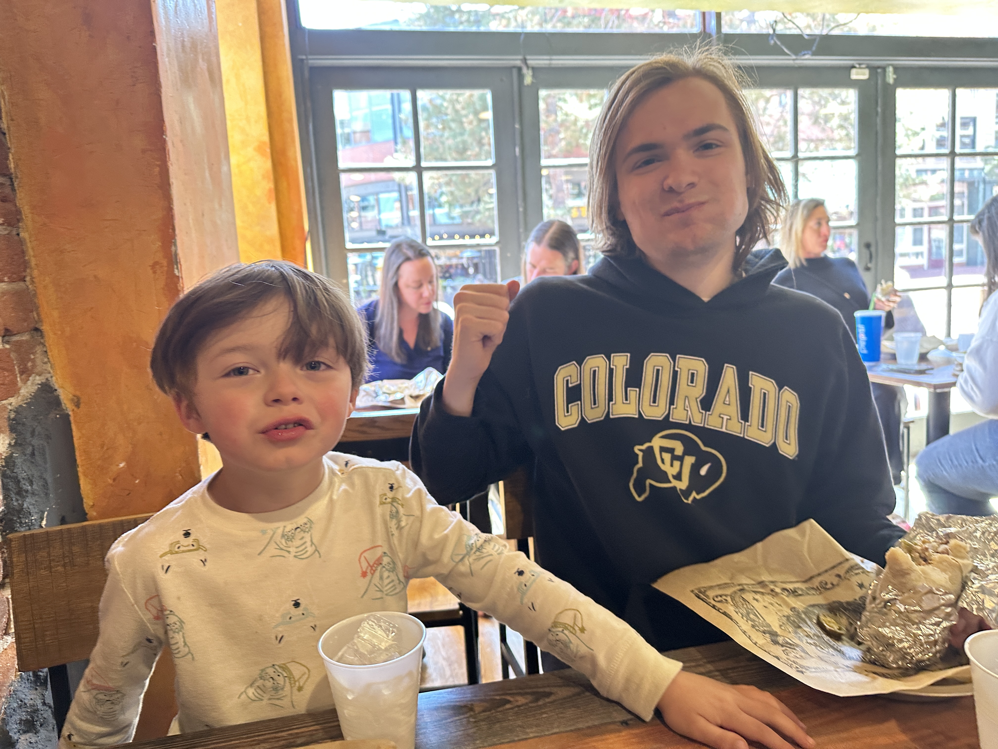 We visited Quinn in Boulder today. There won’t be too many more of these – Quinn graduates next month and moves back to New York after a couple of months. I still remember visiting him right after he moved in during his freshman year; visiting the museum on-campus with baby Elliot, Max, and Karolina.