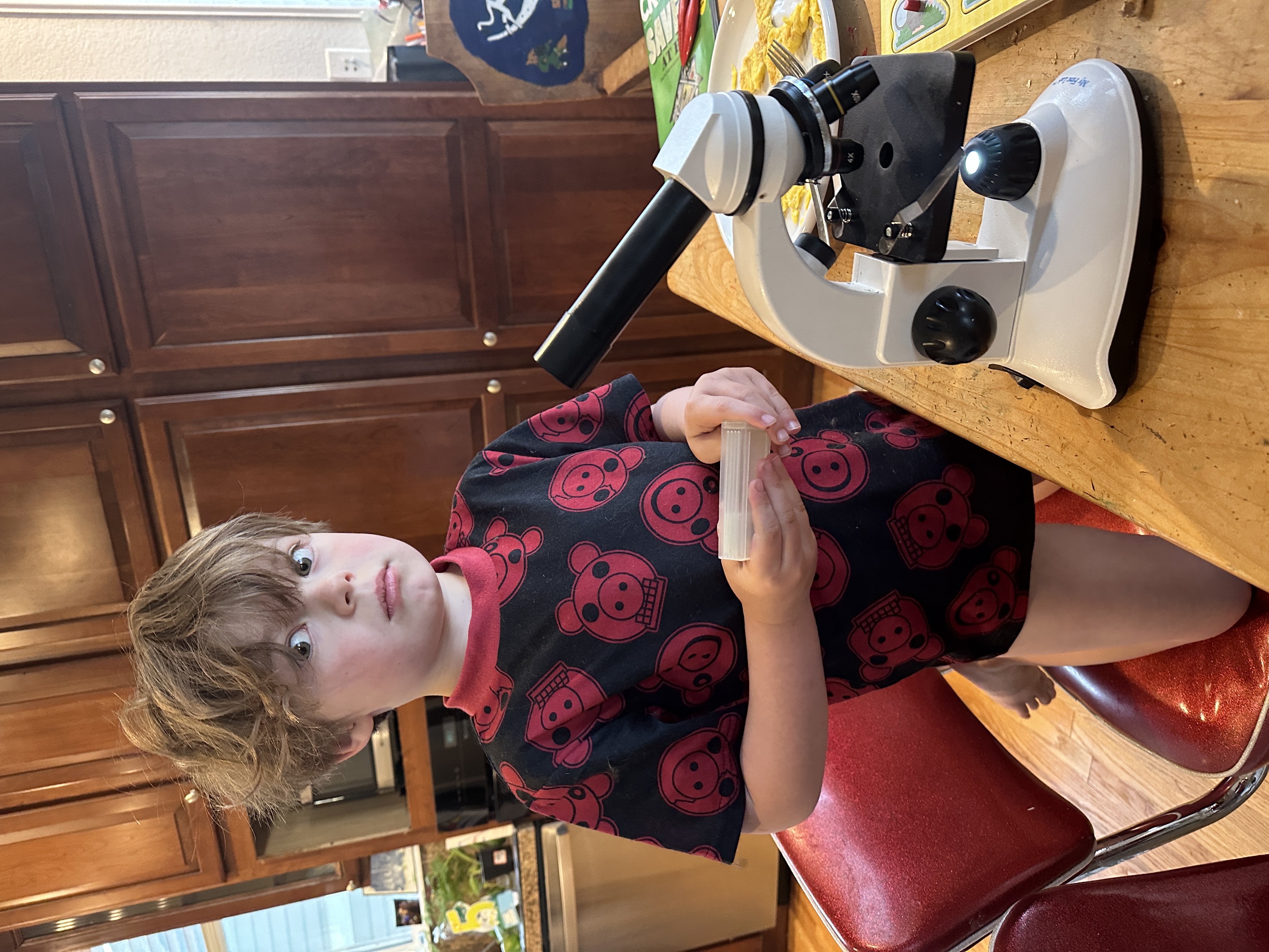 I picked up a microscope for Elliot with some slides. He really enjoyed it. Need to buy some more prepared slides or try to make our own.