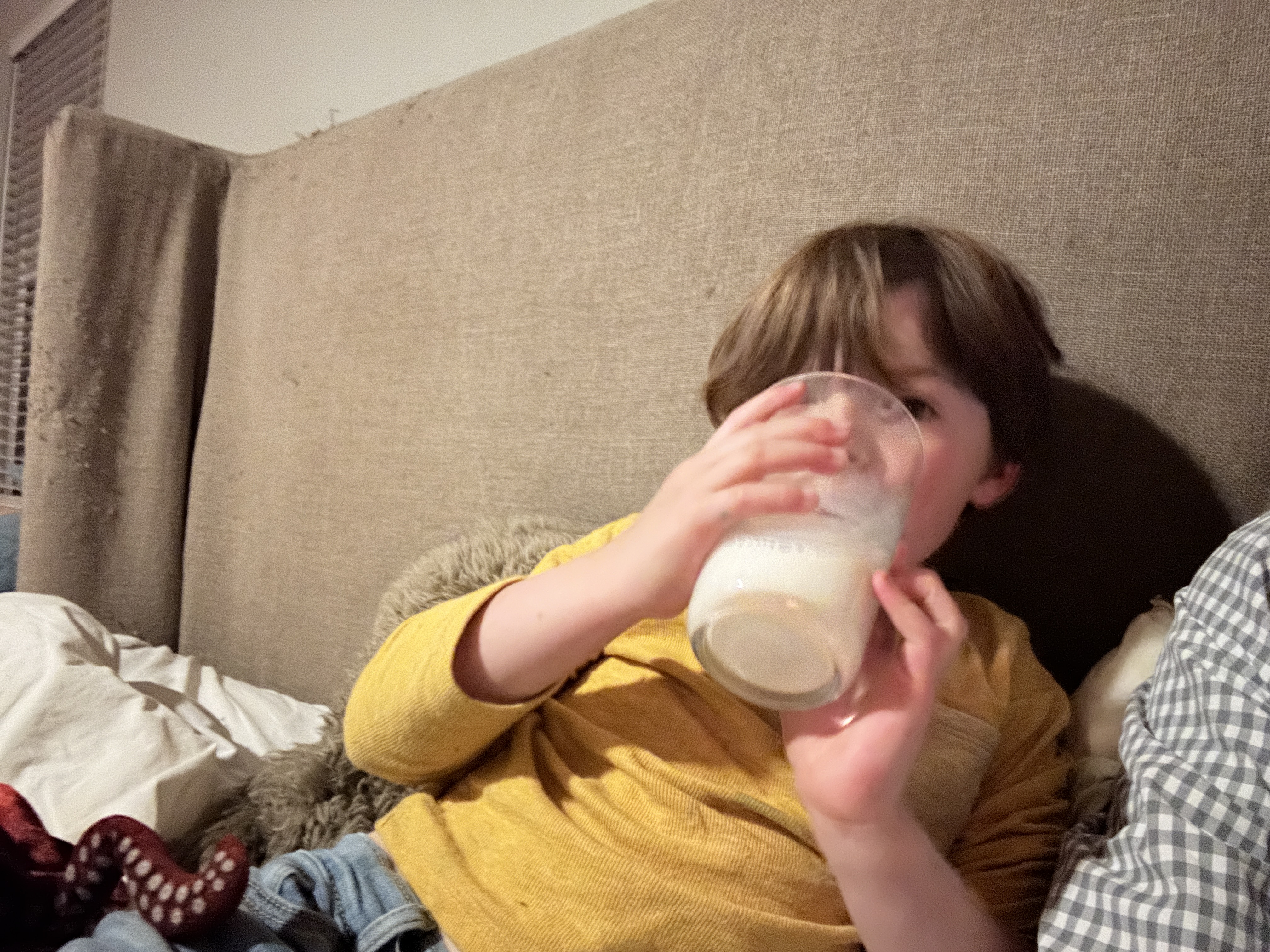 So now most every night that he is with me, we drink a MUG of milk in bed together.