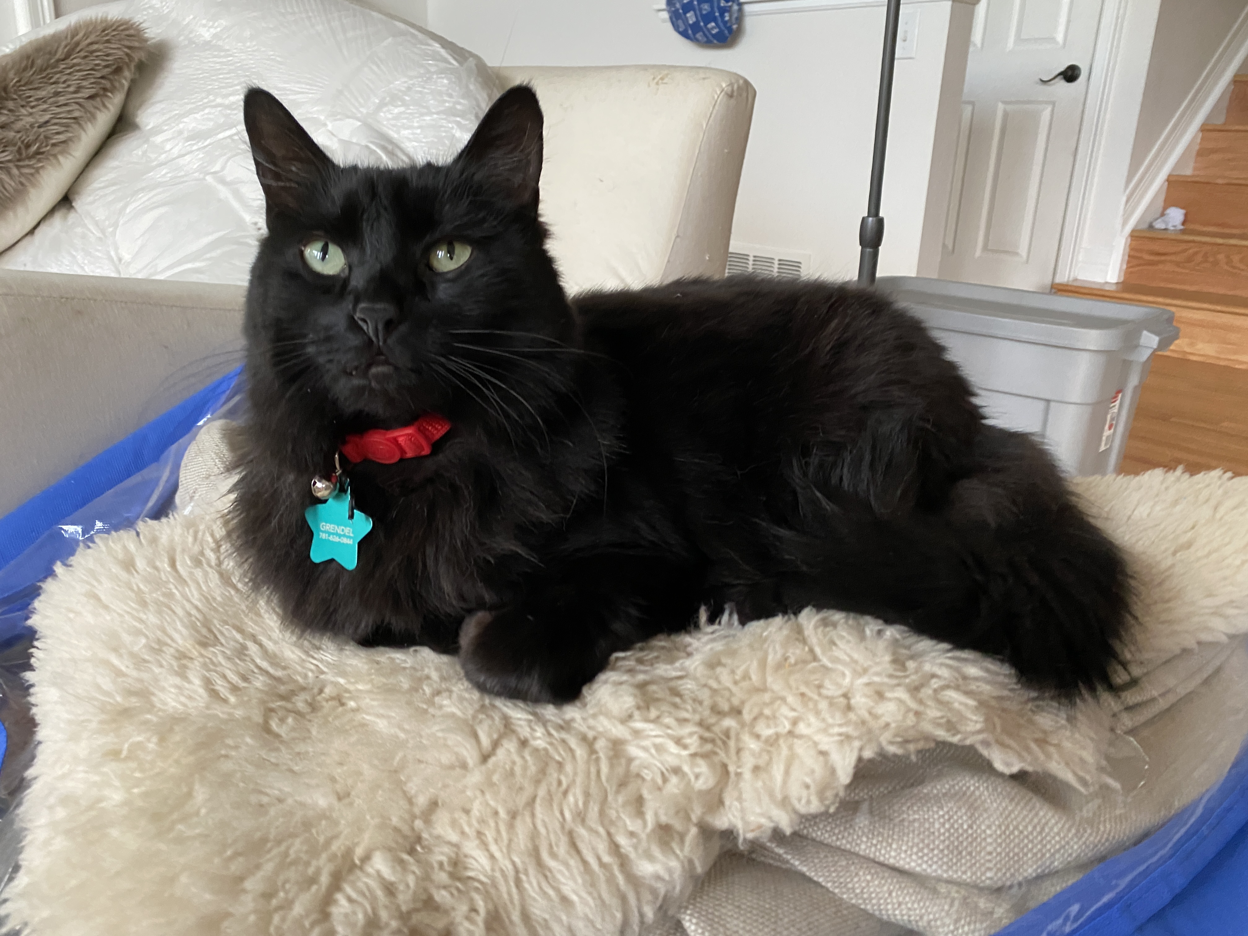When Elliot and I would rest in the “furniture tent” in the backyard, Grendel would jump onto the furniture and rest with us.