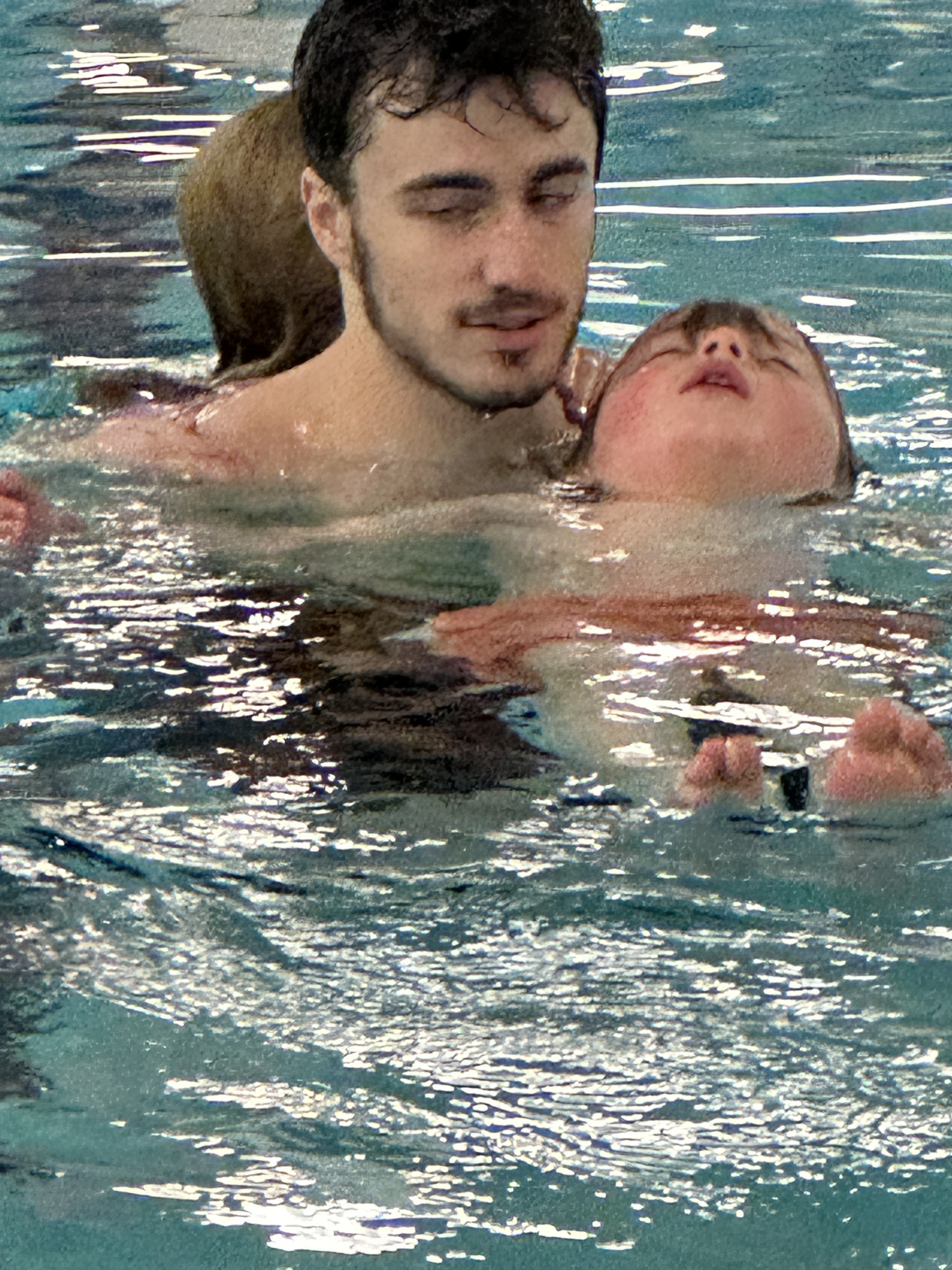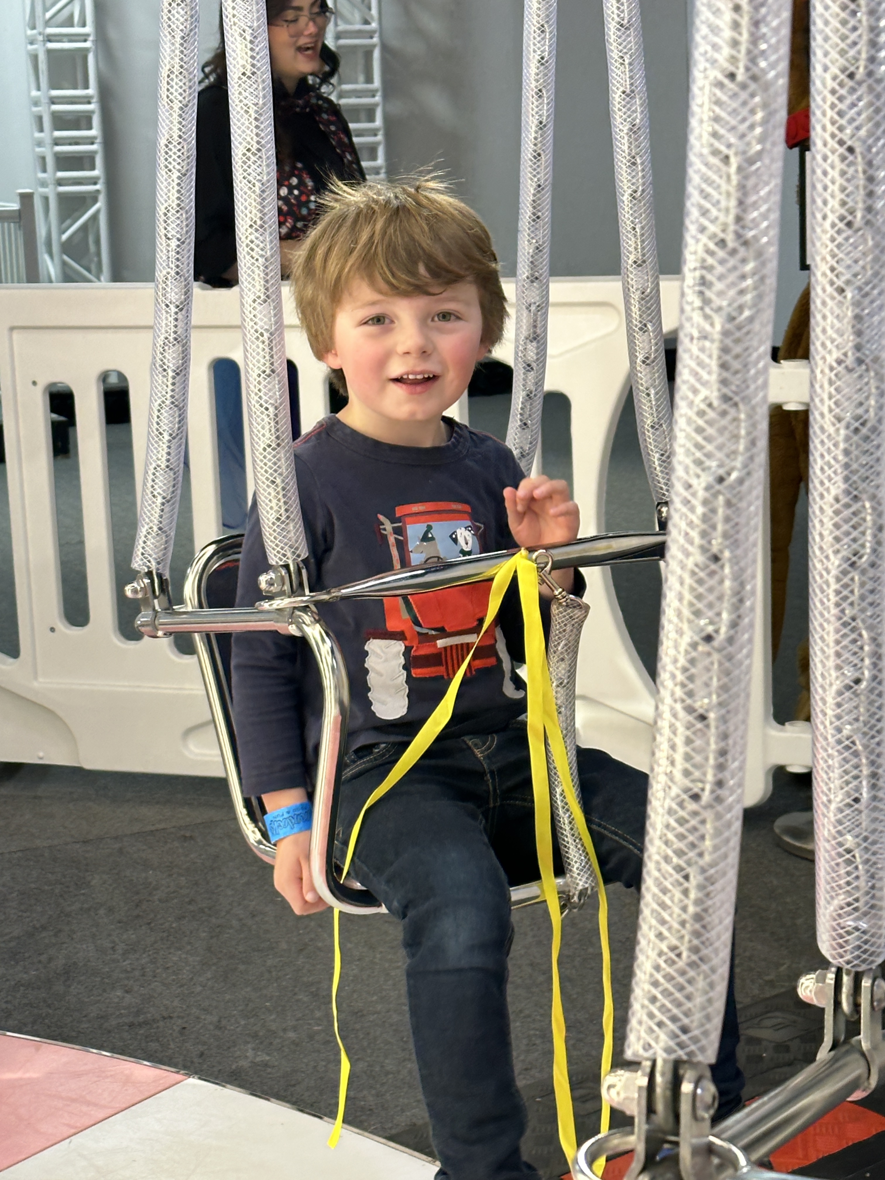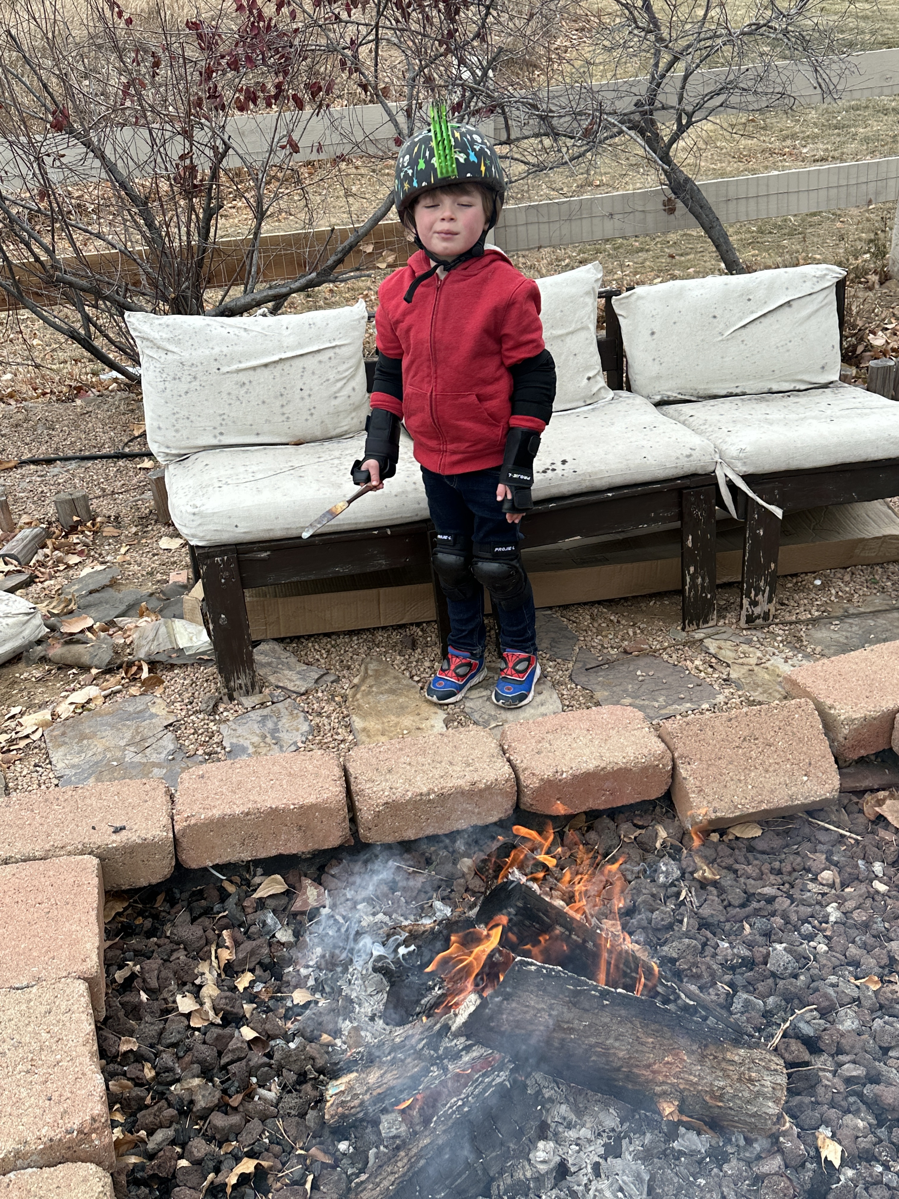 He played baseball outside with a bunch of older boys; I would guess 7 or 8. Elliot is now 4 and a half. They also played dodgeball.