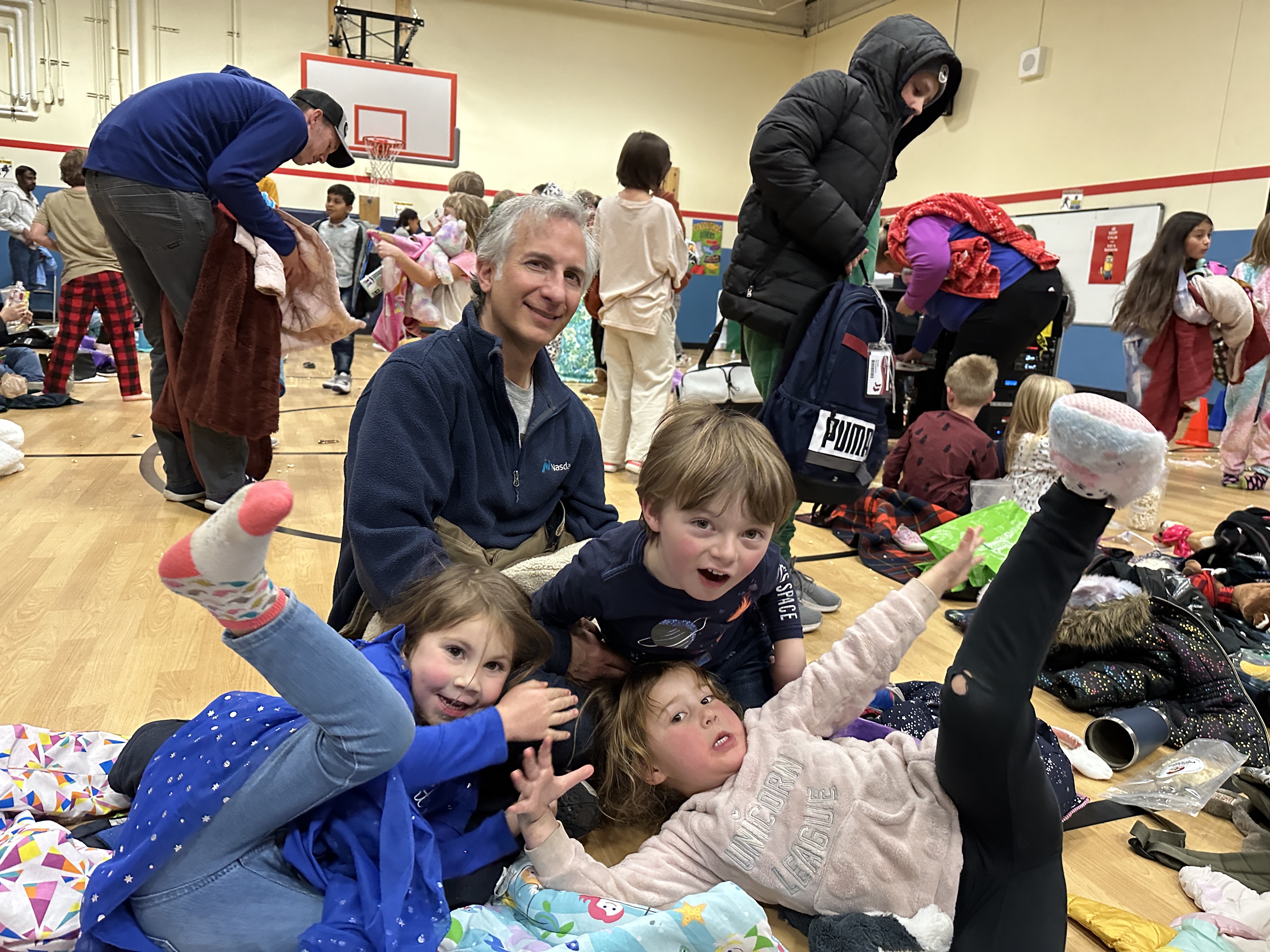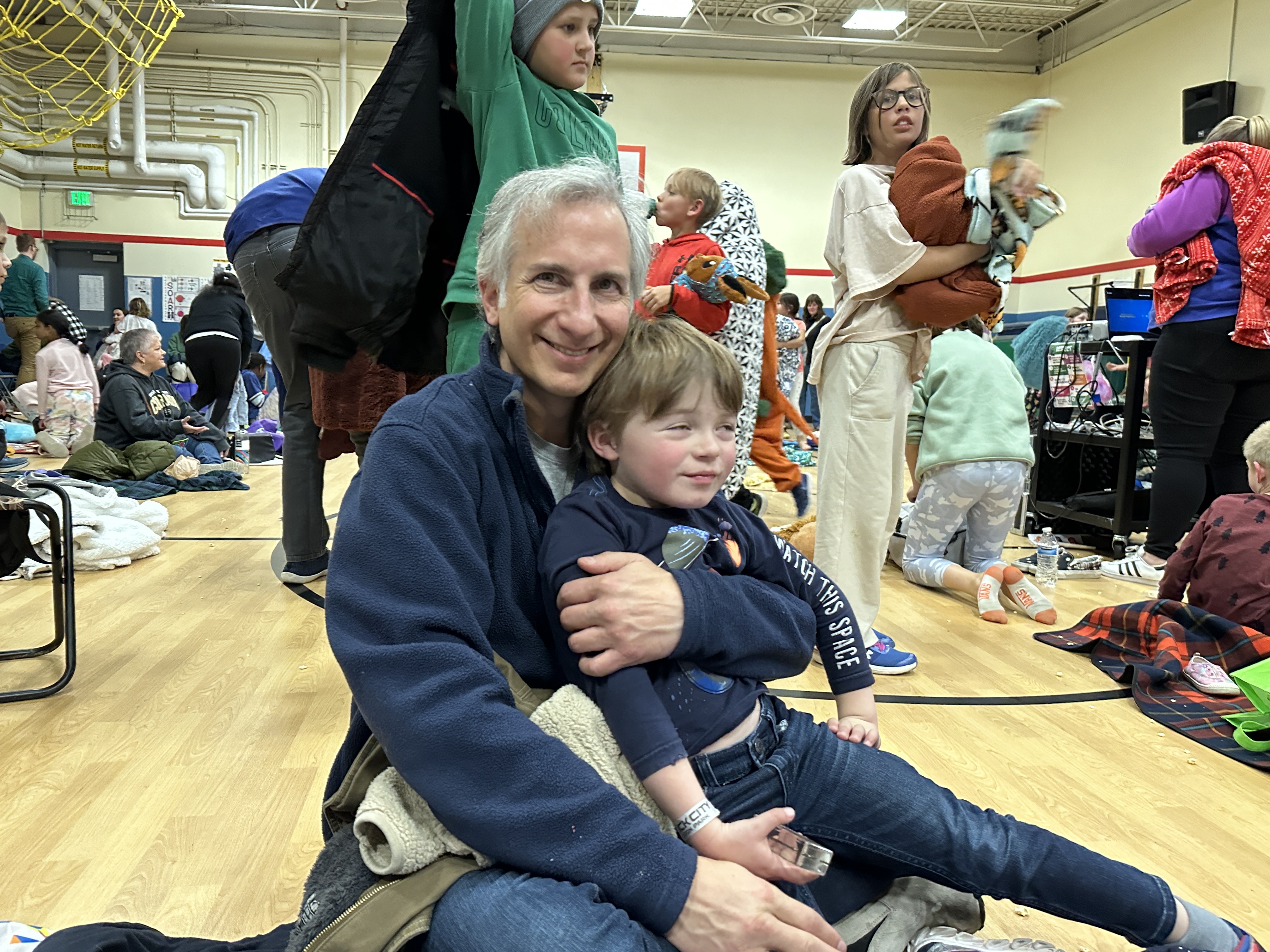 Sunday night we went to a Hanukkah party at the Lone Tree Chabad synagogue where we go to services. There was an ice cream truck outside selling $10 ice cream with a long line. It was very cold, and I had no coat.