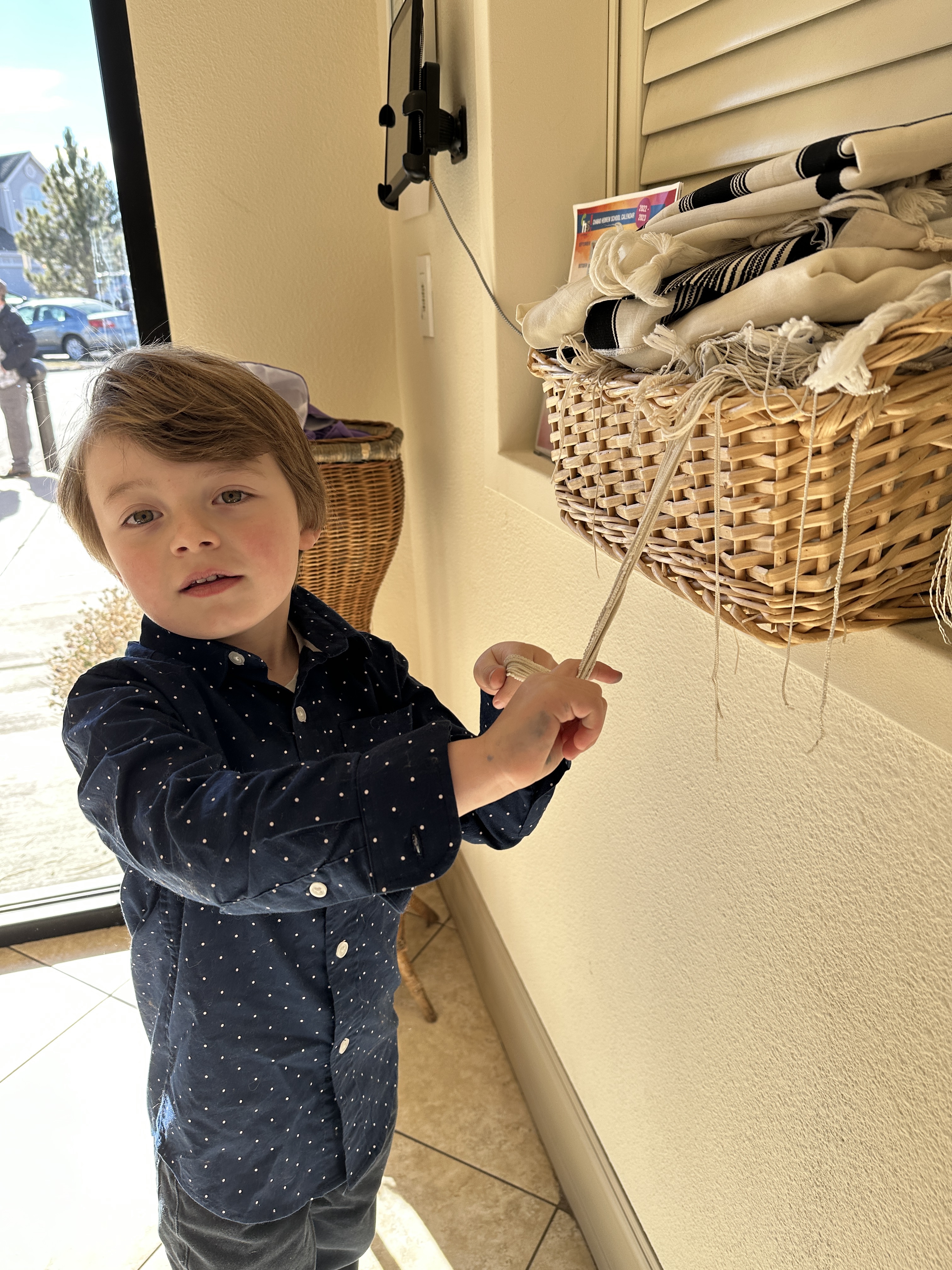 I bent down and said, “Don’t talk to me like that or we will leave. That’s not nice.” I asked for an apology which he begrudgingly gave. Elliot was angry, but quickly moved on (thankfully!), and we had a good time at the party making candles, donuts, and painting a dreidel.
