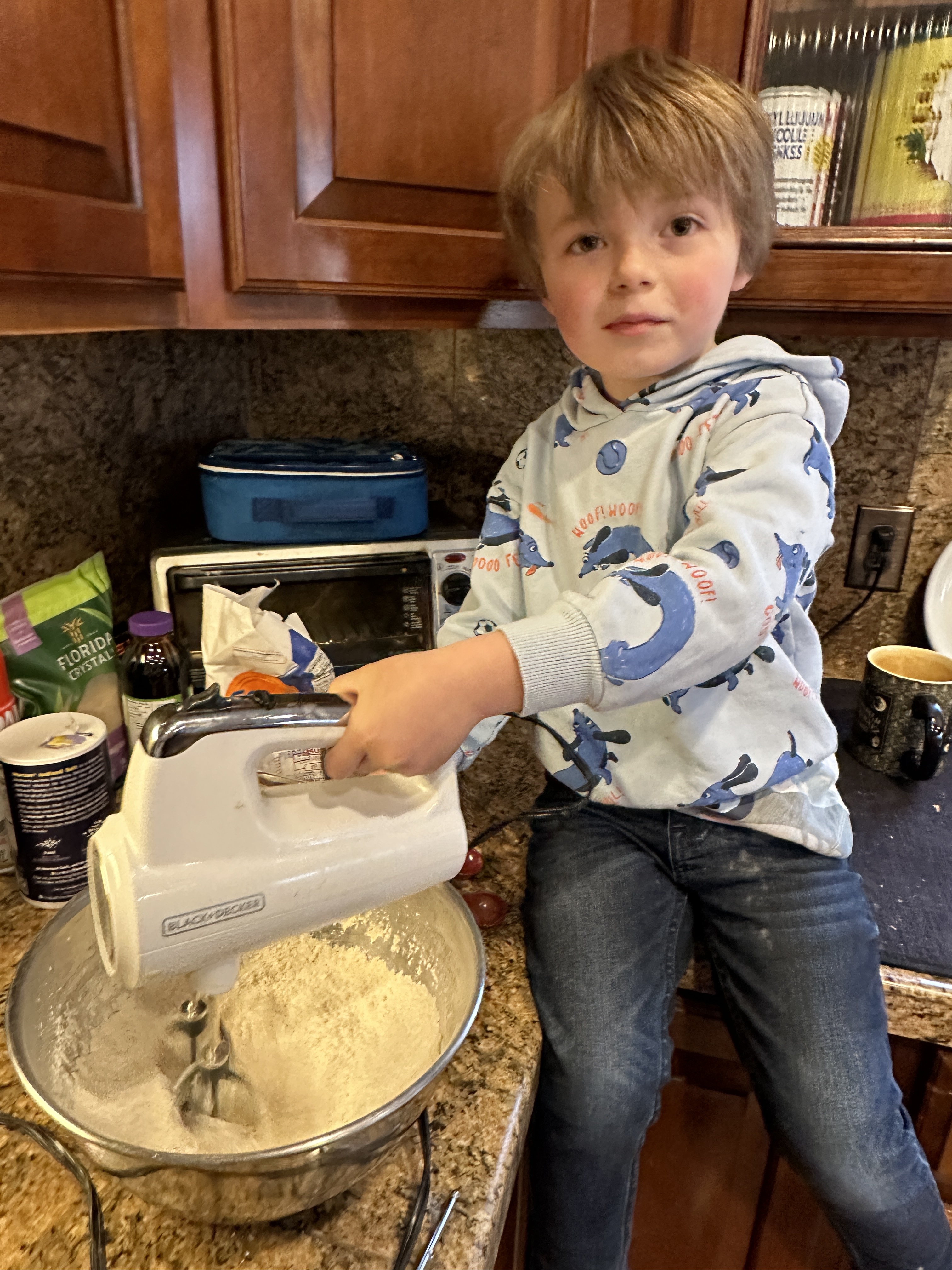 Elliot loves to watch the donuts being made at Krispy Krene. He can watch for 10 or 15 minutes.