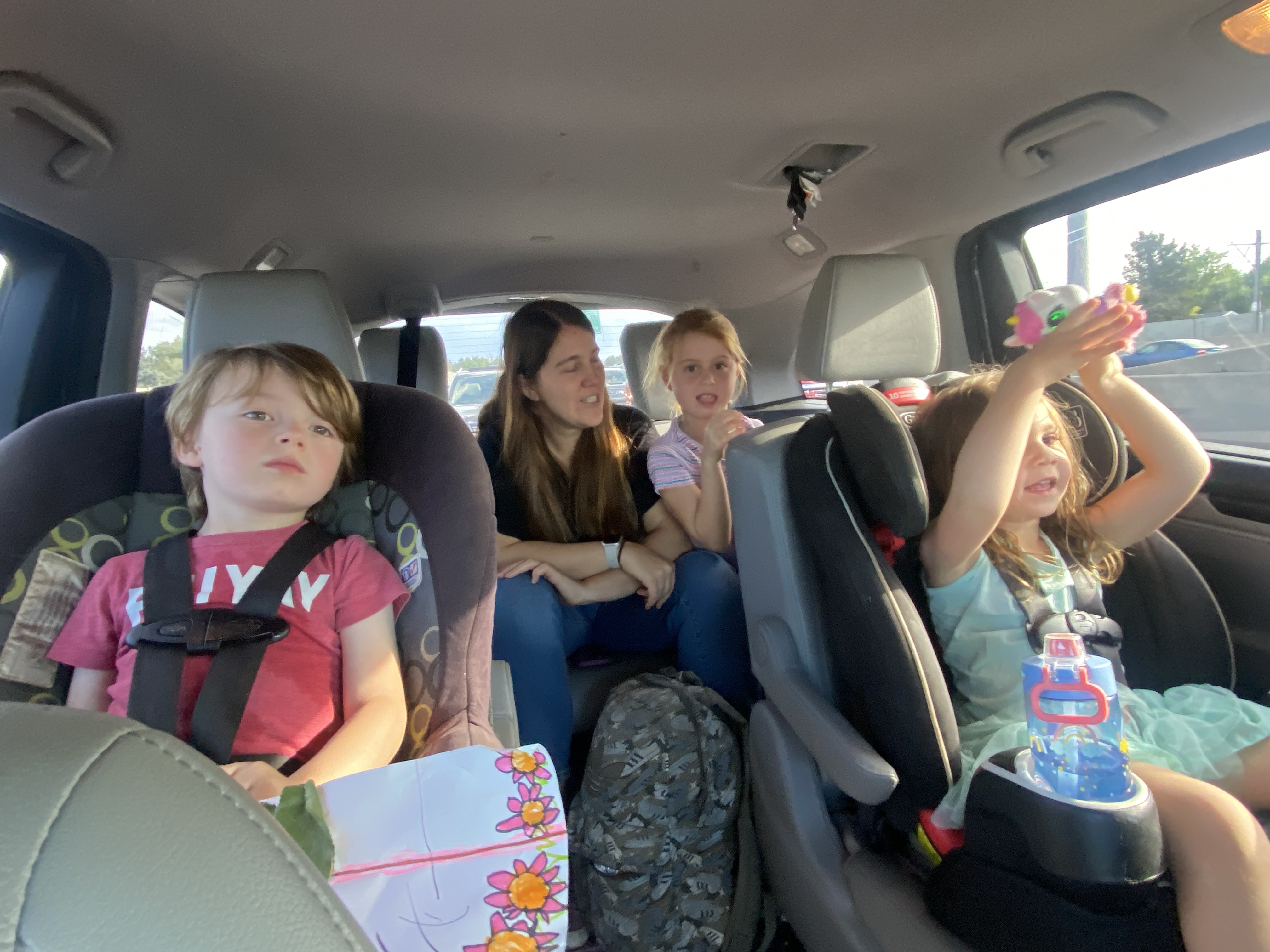 We carpooled together and Sagi drove. That’s Piper next to Elliot.