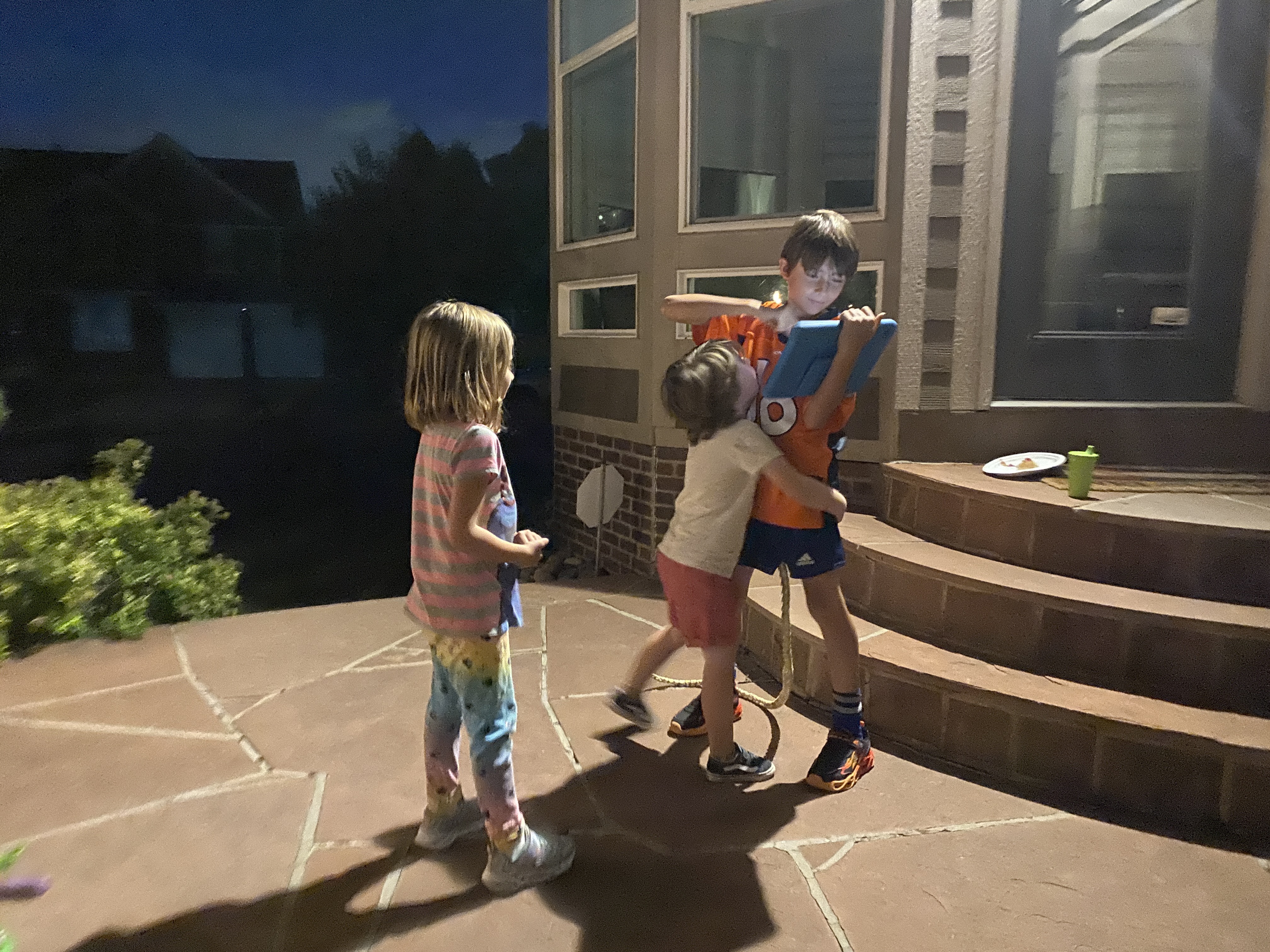 It is a lesson he had to learn. But it’s still painful to see my child hurt. Fortunately, he rebounded quickly and played with Luca and Connor the rest of the night, and Josie a little bit. She is 6 months older than Elliot.