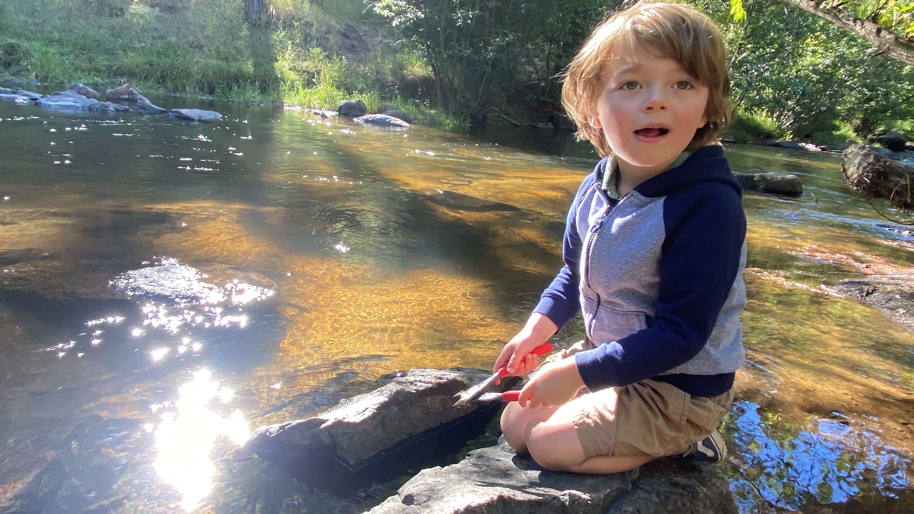 At O’Fallon Park we explored them Rock Island. We played in the river the whole time. Elliot made two aquariums from empty glass containers that held our lunch. They had sand and a few tiny snails. He pretended there were other creatures in it, though. It was wonderful to play and watch him play. He truly loves the water. He called these “tide pools” because we watched Coyote Peterson and Nick Bingo make tide pool aquariums on YouTube. I corrected him a couple of times, but he still liked to call them tide pools.