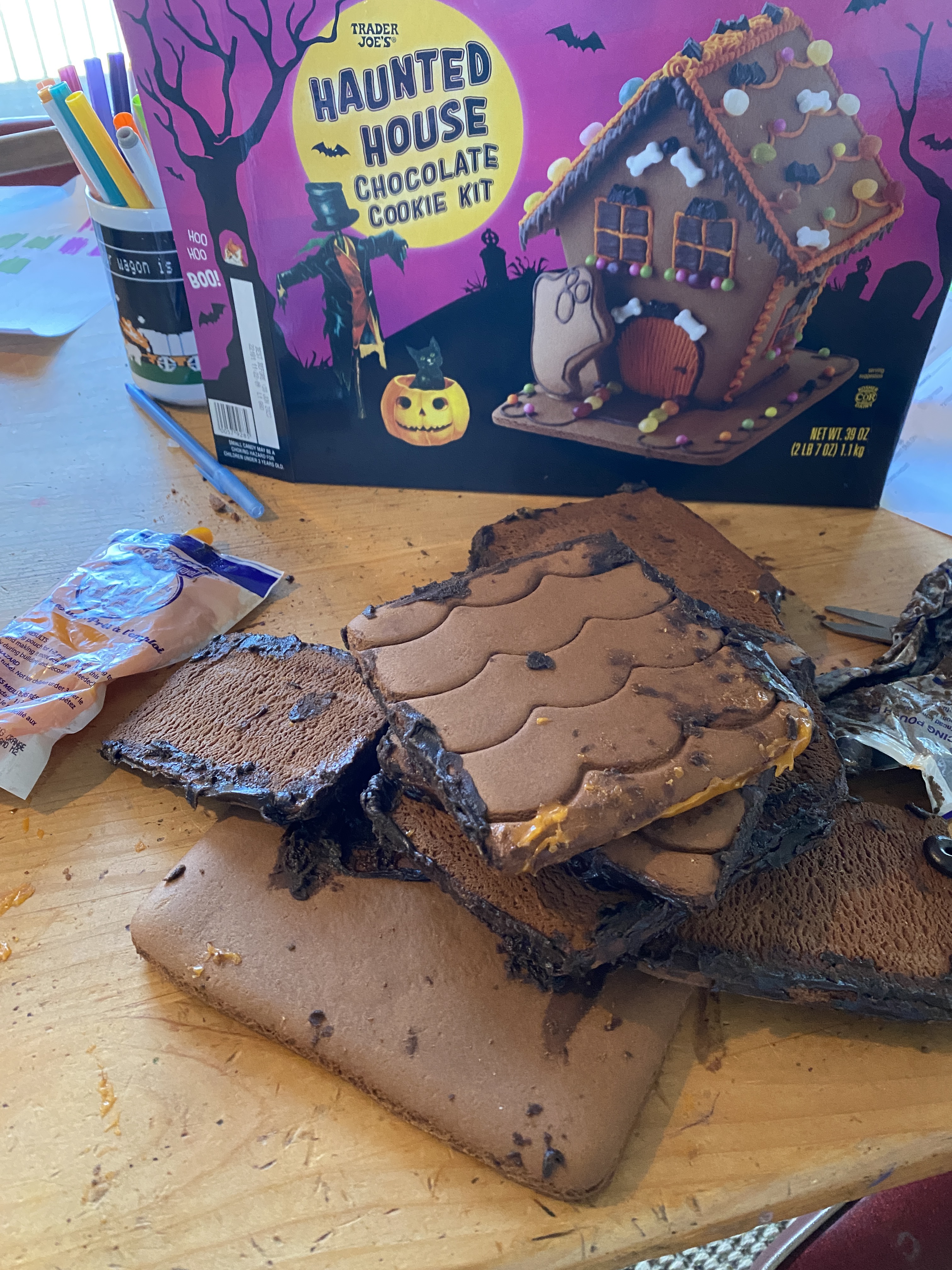 I’m a decent software engineer. Don’t ever confuse that with a building engineer. I’ve never been able to build a gingerbread house. This was a Halloween one from Trader Joe’s. Elliot was SO EXCITED to build this together. I feel I let him down. But it still tastes good!