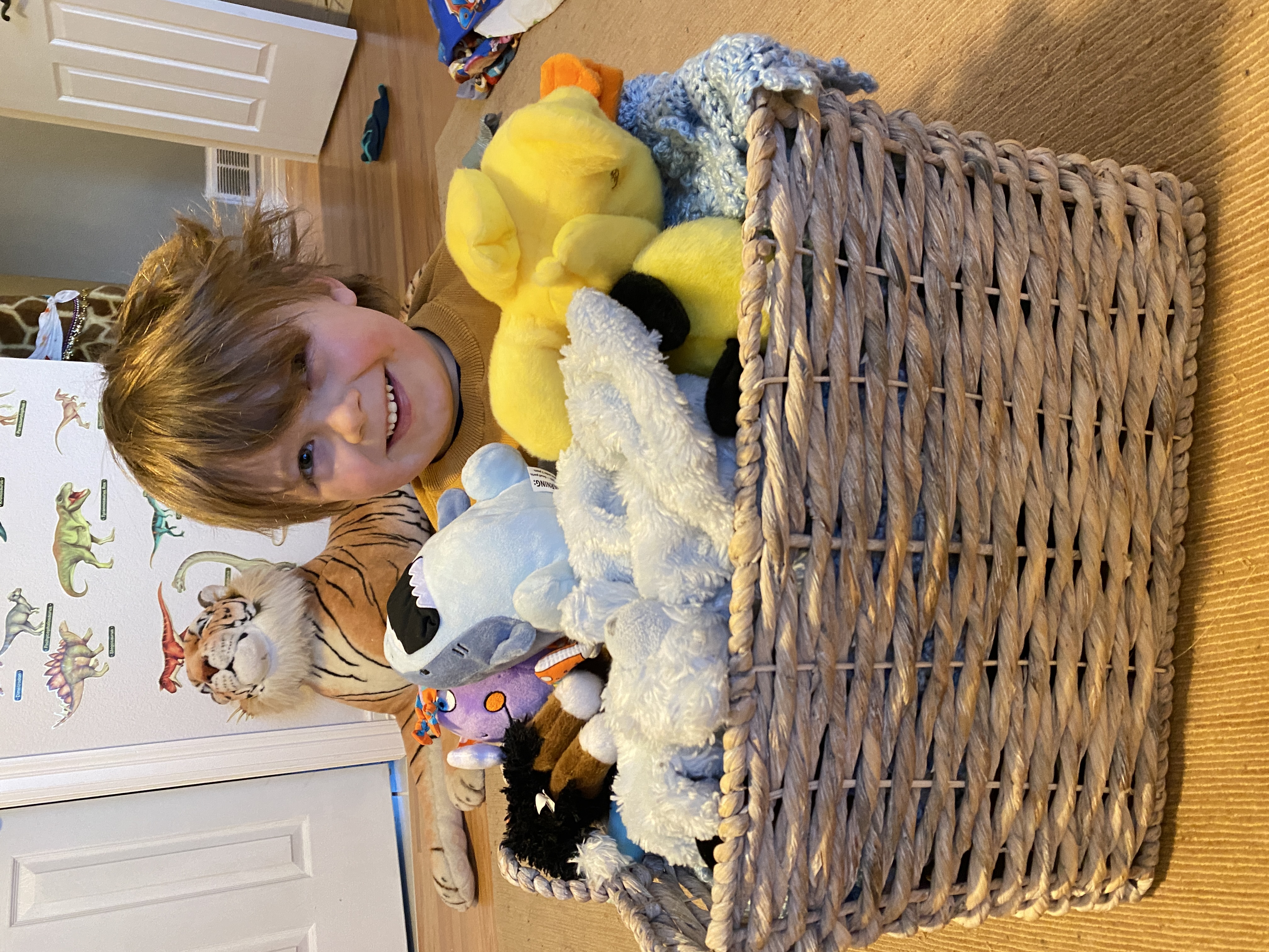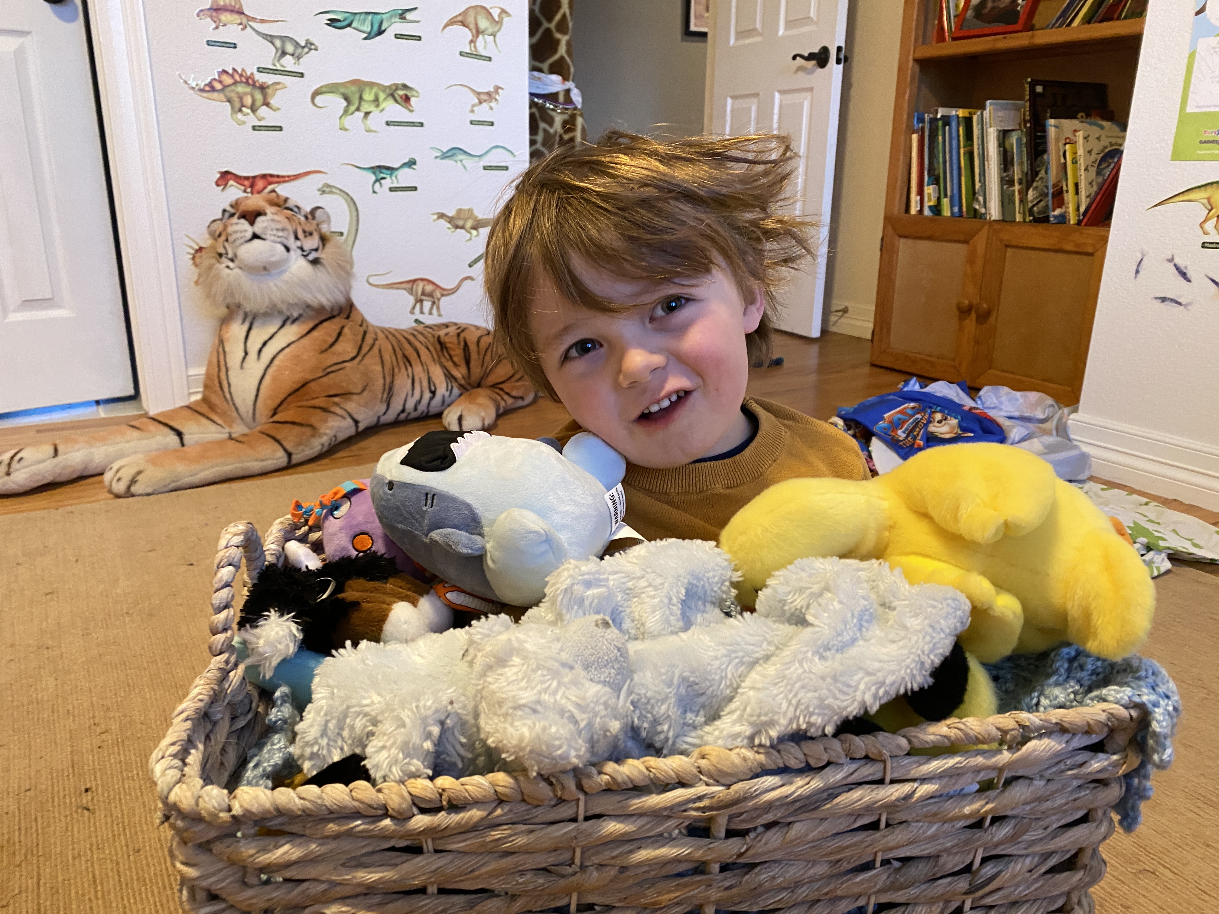 He’s really into the “guess what? Chicken butt” jokes right now. He laughs hysterically at each one. Over and over. He changes them a little bit and tries them out. Yesterday, he tried them on Kim at his swimming lesson. “Guess how? Chicken soap pow!” Or something like that. He laughed and she did, too.