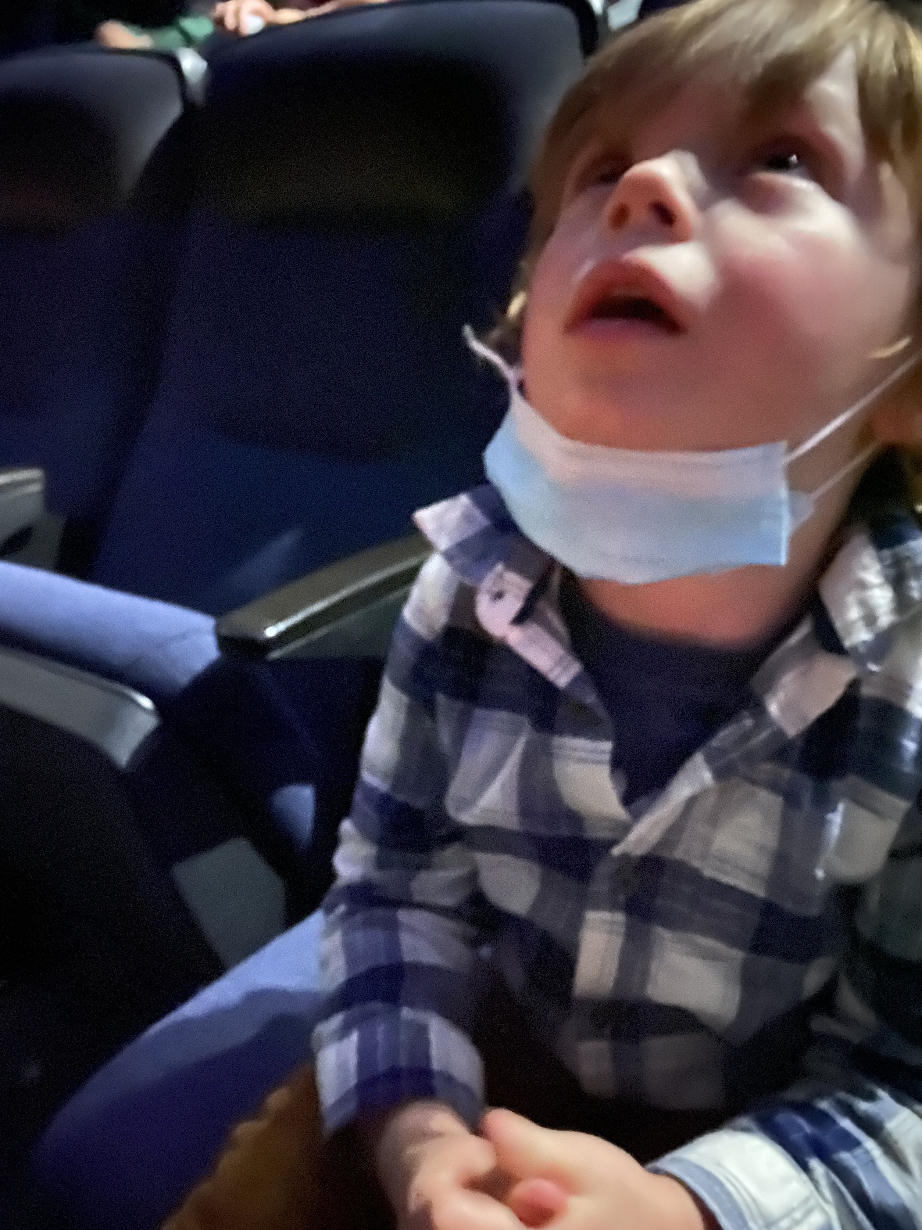 While waiting for the planetarium show to begin, Elliot asked “It’s loading?” like a the space app that he loves to use He LOVED the show! It was a tour of some of the planets with a live narrator. It was on a pretend spaceship that launched from space. We had to go a second time ( we are waiting in line now)