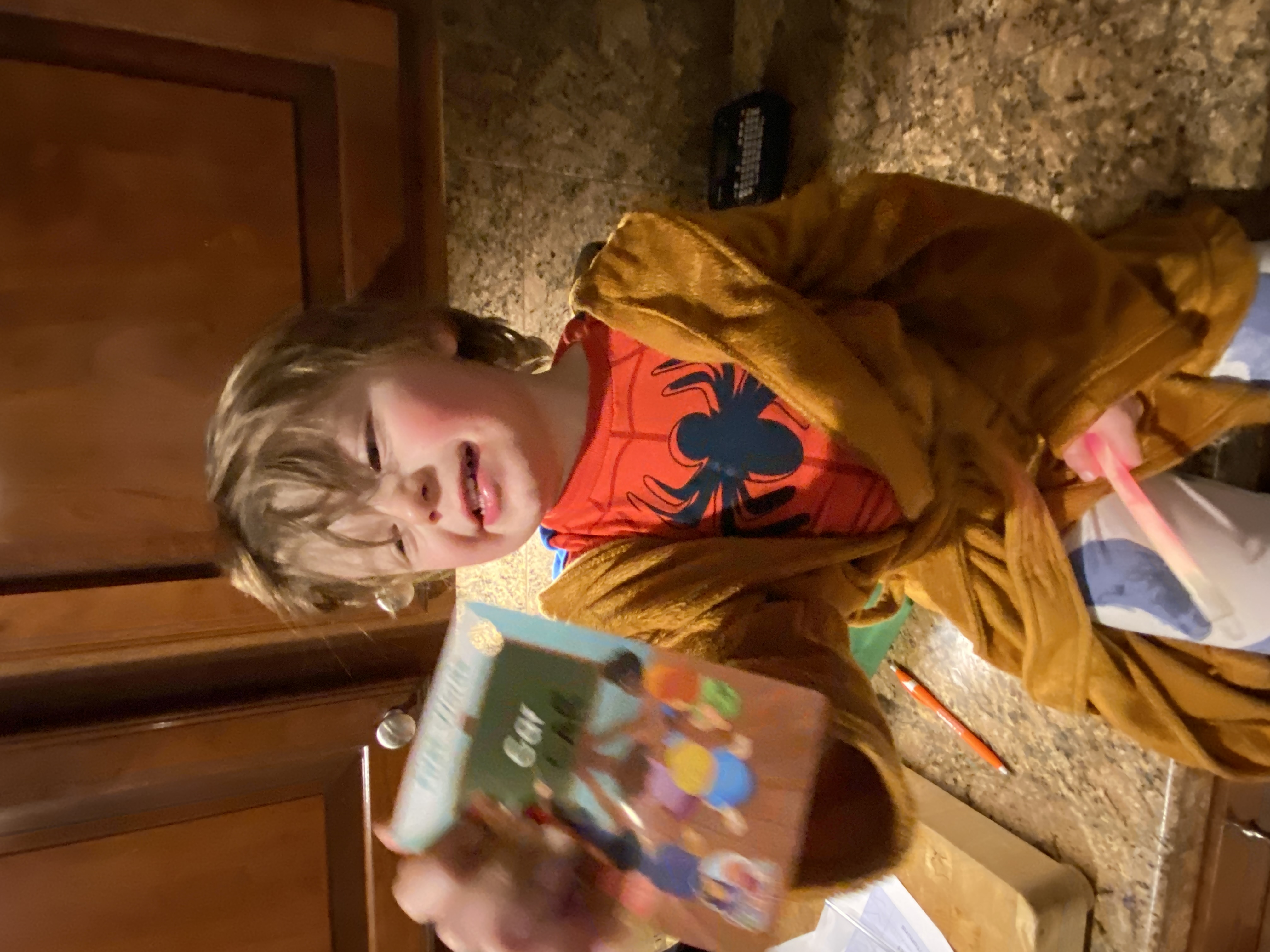 “Elliot was at a birthday party with the pizza kittens, the color kittens, and Blippi. Ironman and Spider-Man arrived. They saw Elliot and said, ‘Where’s your super hero costume?'”