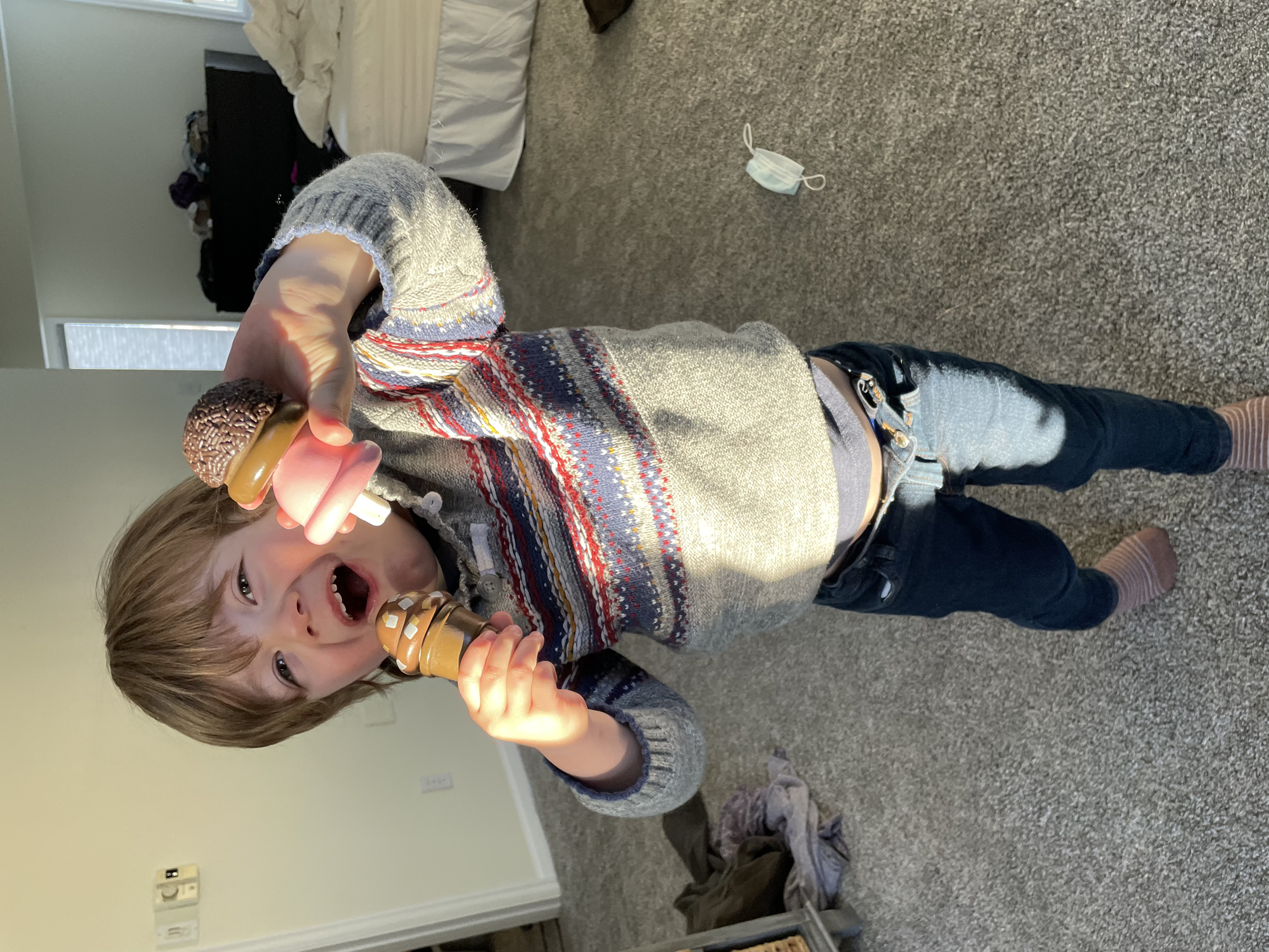 I continue, “But before Siren Head can make another move, Huggie Wuggie runs toward him and eats him! That’s the end of Siren Head. Then there is another knock at the door. Huggie Wuggie opens it and it’s FISH FACE!”