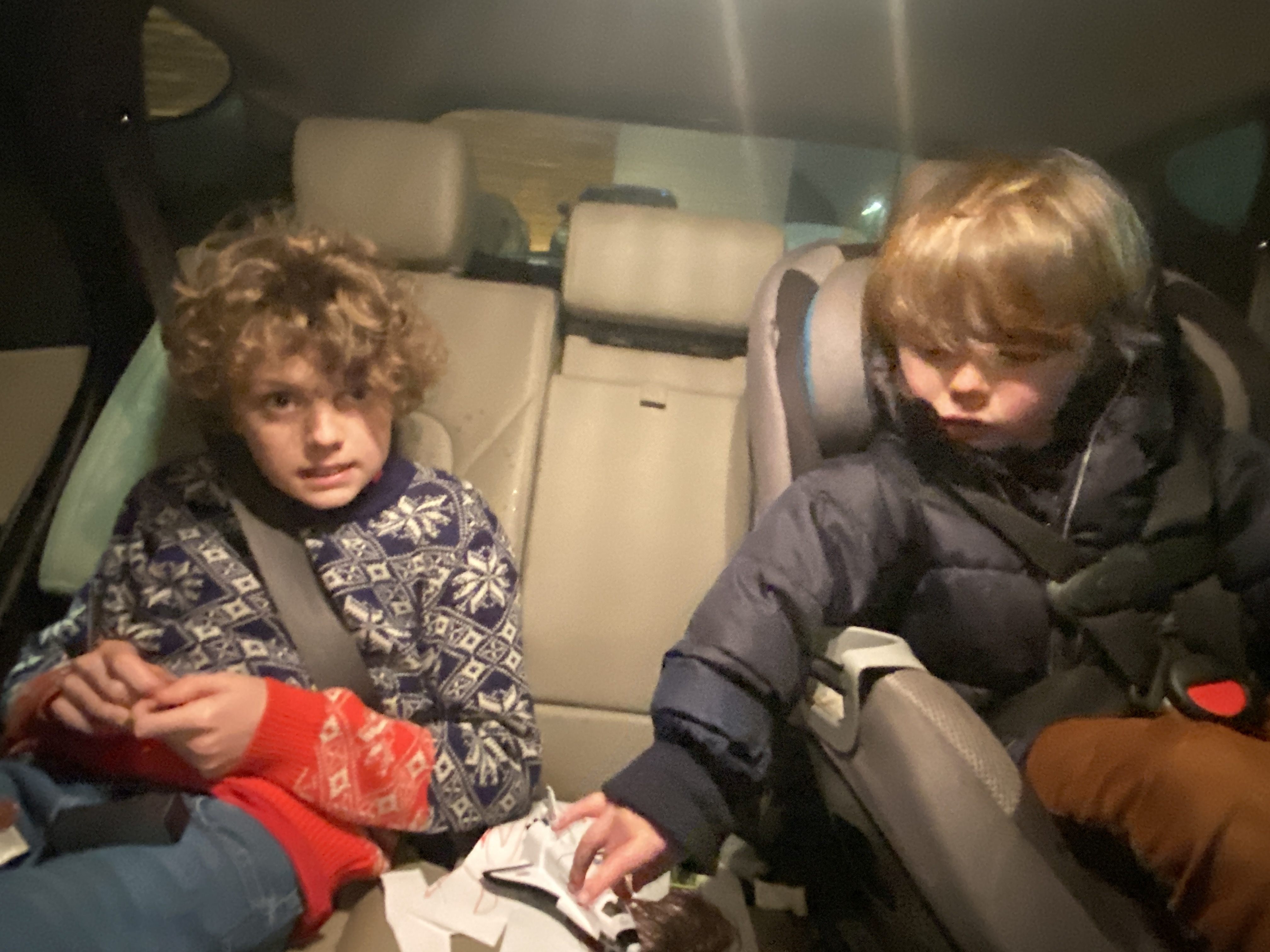 Max, Elliot, and I were going to meet at the Main Event arcade when Karolina’s car battery stopped working in the Garden Preschool parking lot. I drove there to jump start the car. The kids were in the car with Karolina.