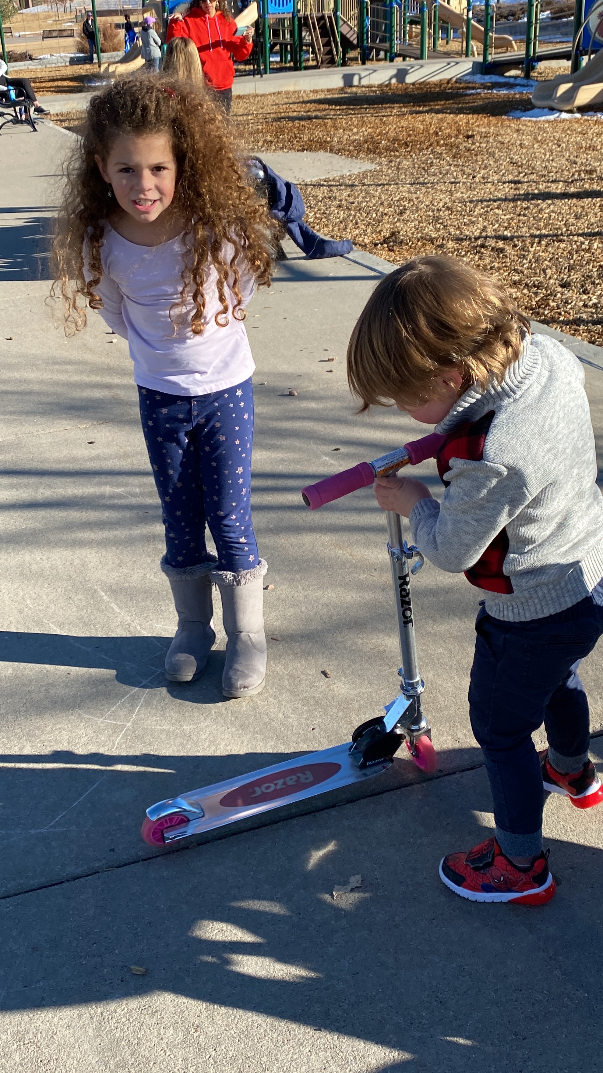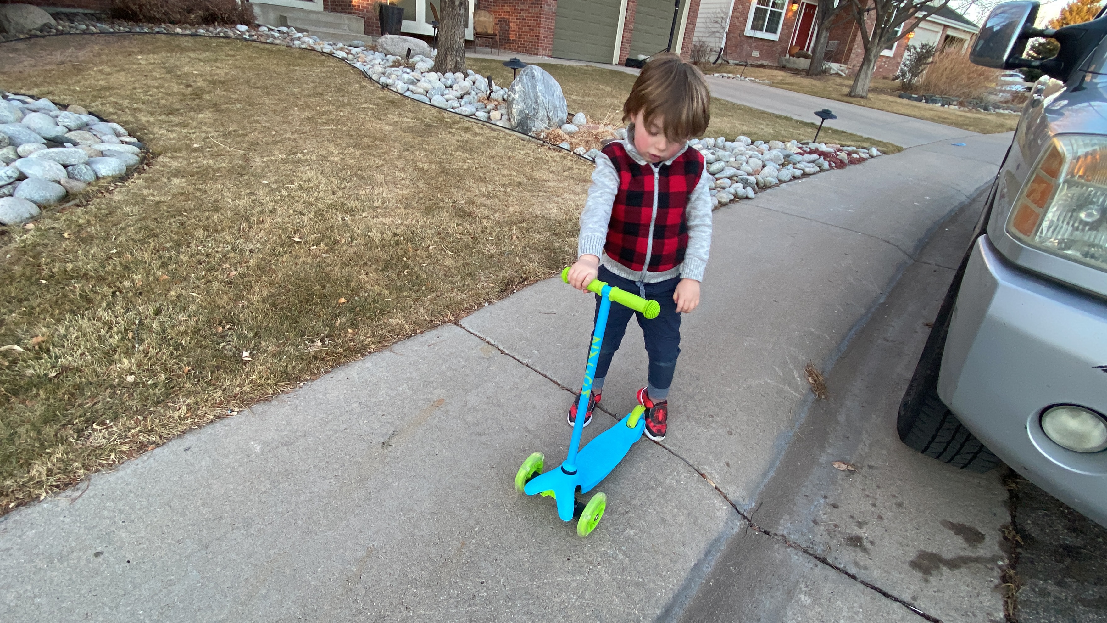 We remembered how he learned to use Max’s scooter today, and that we bought a new one (3-wheeler) after the play date with Liam and his sisters.
