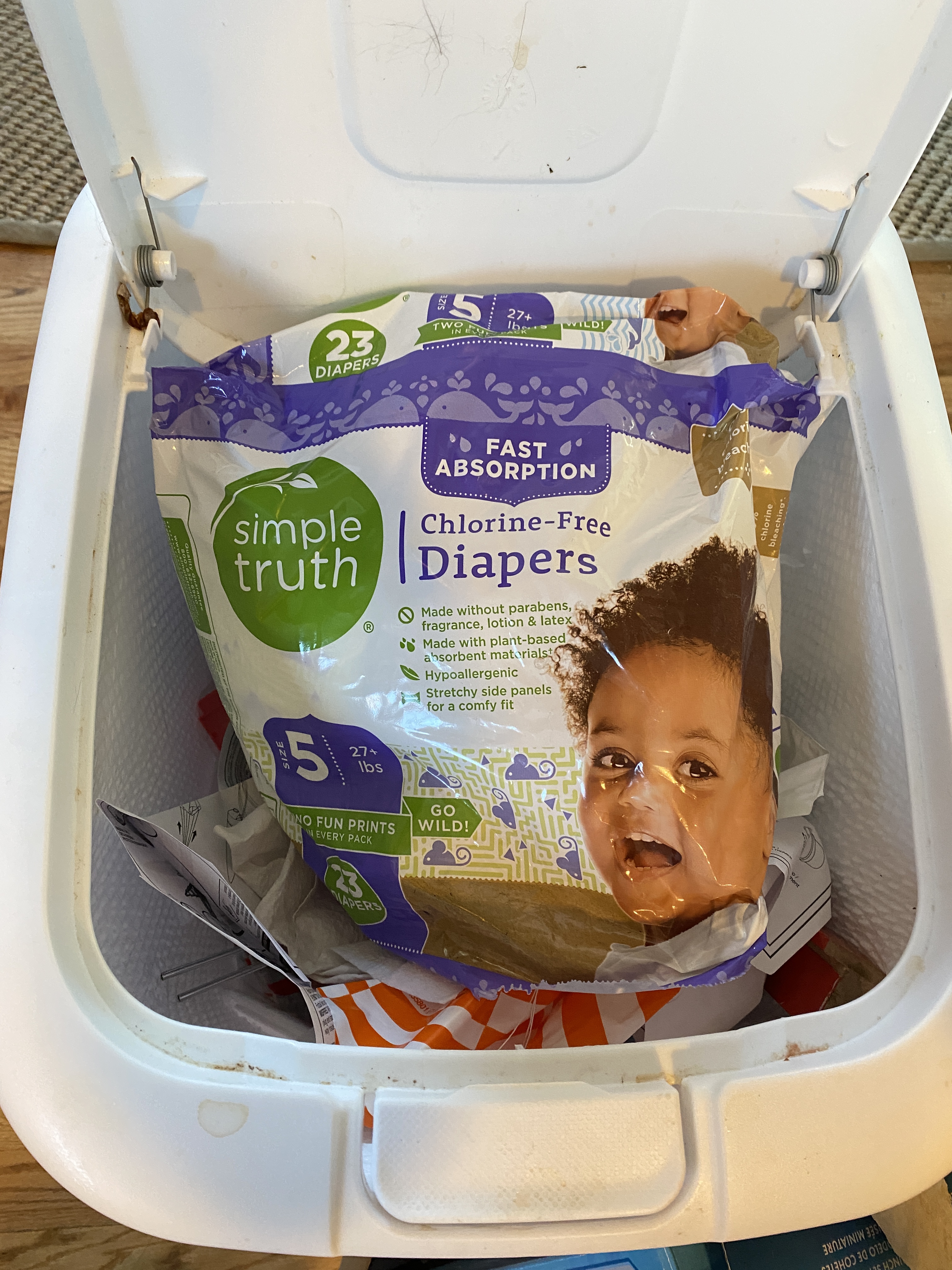 Last night, Elliot woke up and told me he needed to go peepee. He has not needed diapers in a couple months, but even then he only needed them sporadically. But last night was a clear signal I can finally throw these away!