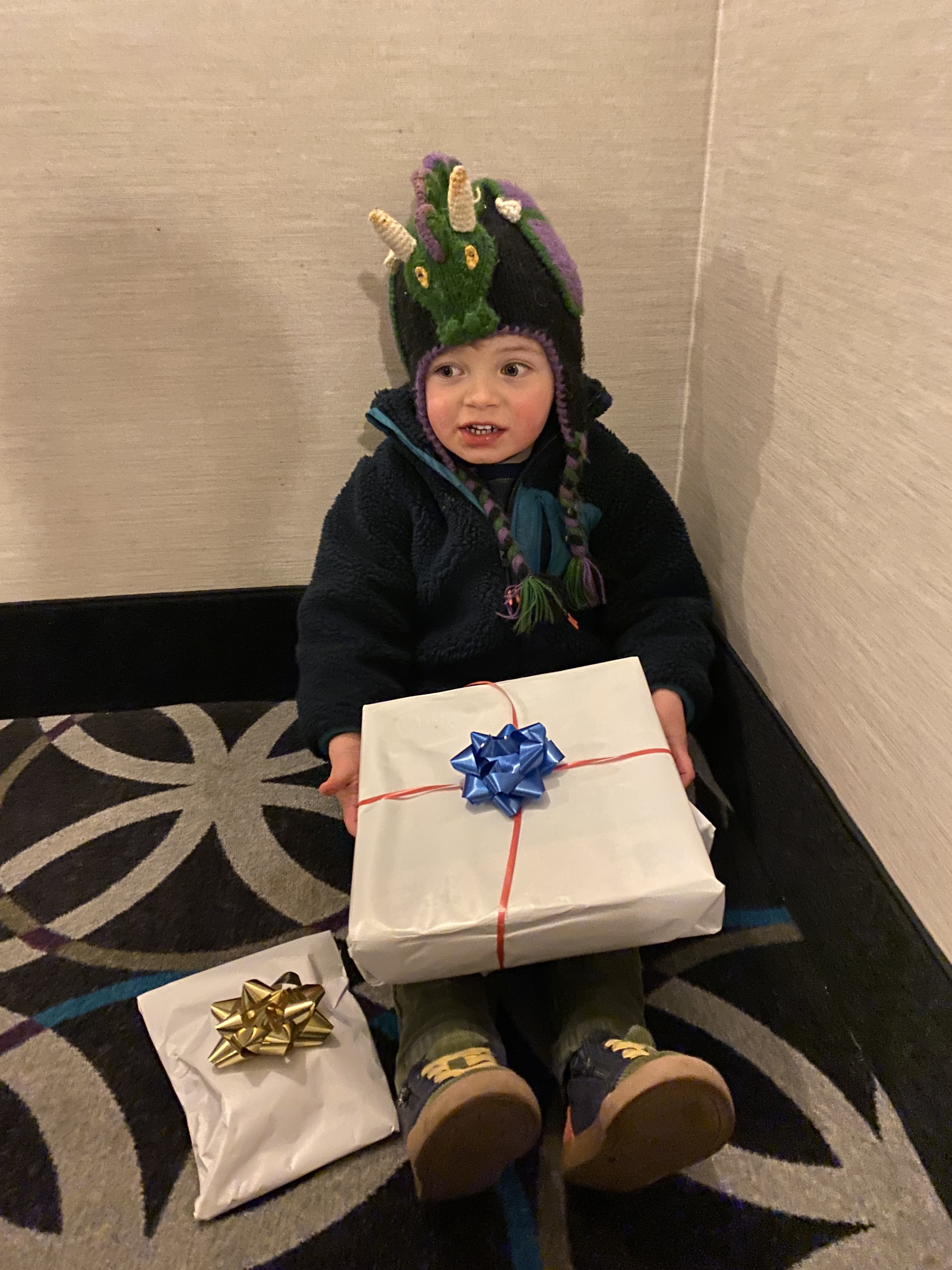 Elliot loved it! A half-hour lesson with Jordan Haywood at the Colorado Music Institute. The first half went well – they went over black and white keys, pressing hard and soft, using different fingers. The second half did not go as well because Jordan tried to teach Elliot fingering based on numbers; e.g. thumb is finger one, index finger is finger two, etc. He did not really get it.