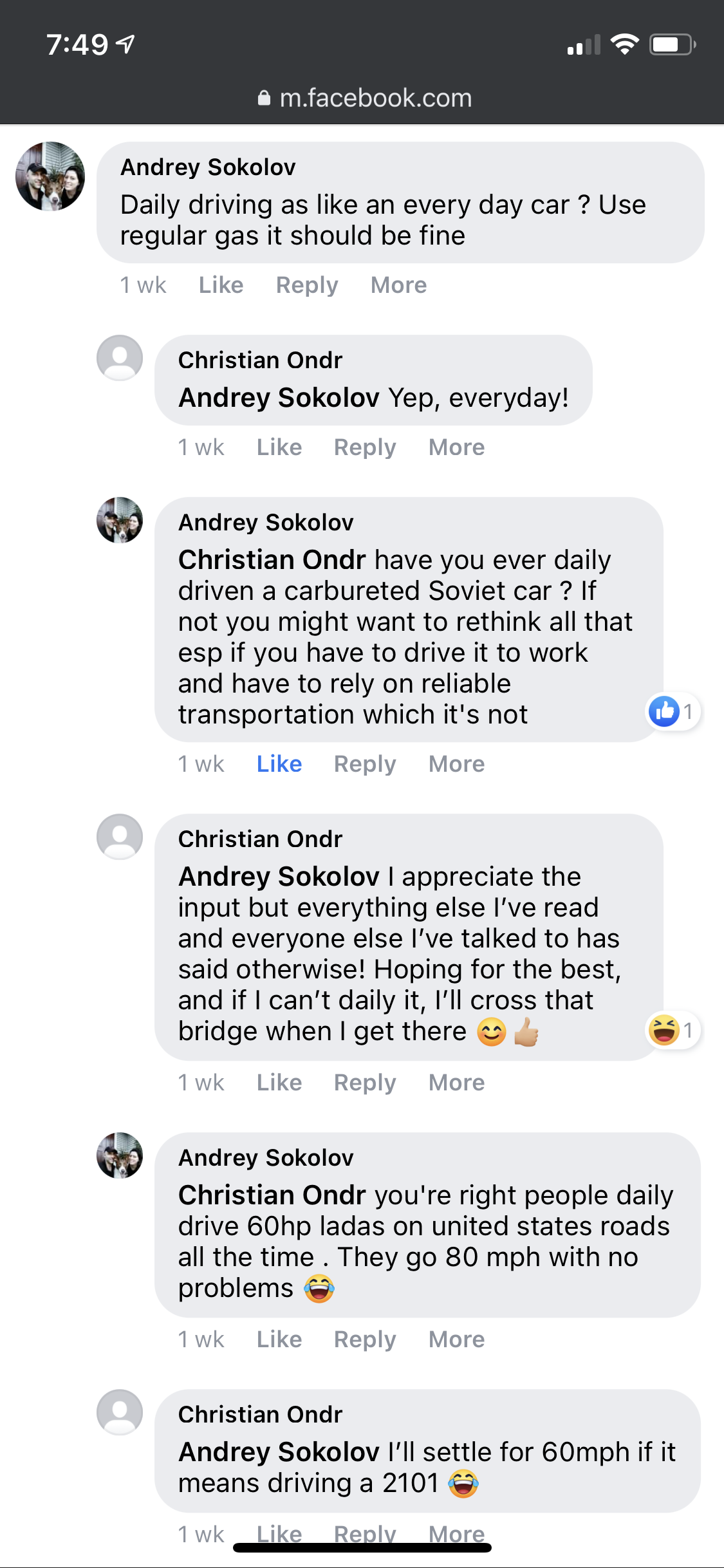 Today Elliot and I sold the 1981 LADA 2101 to Christian Ondr from St. Louis. He flew to Denver and is driving it back against my warnings about its lack of any safety features.
