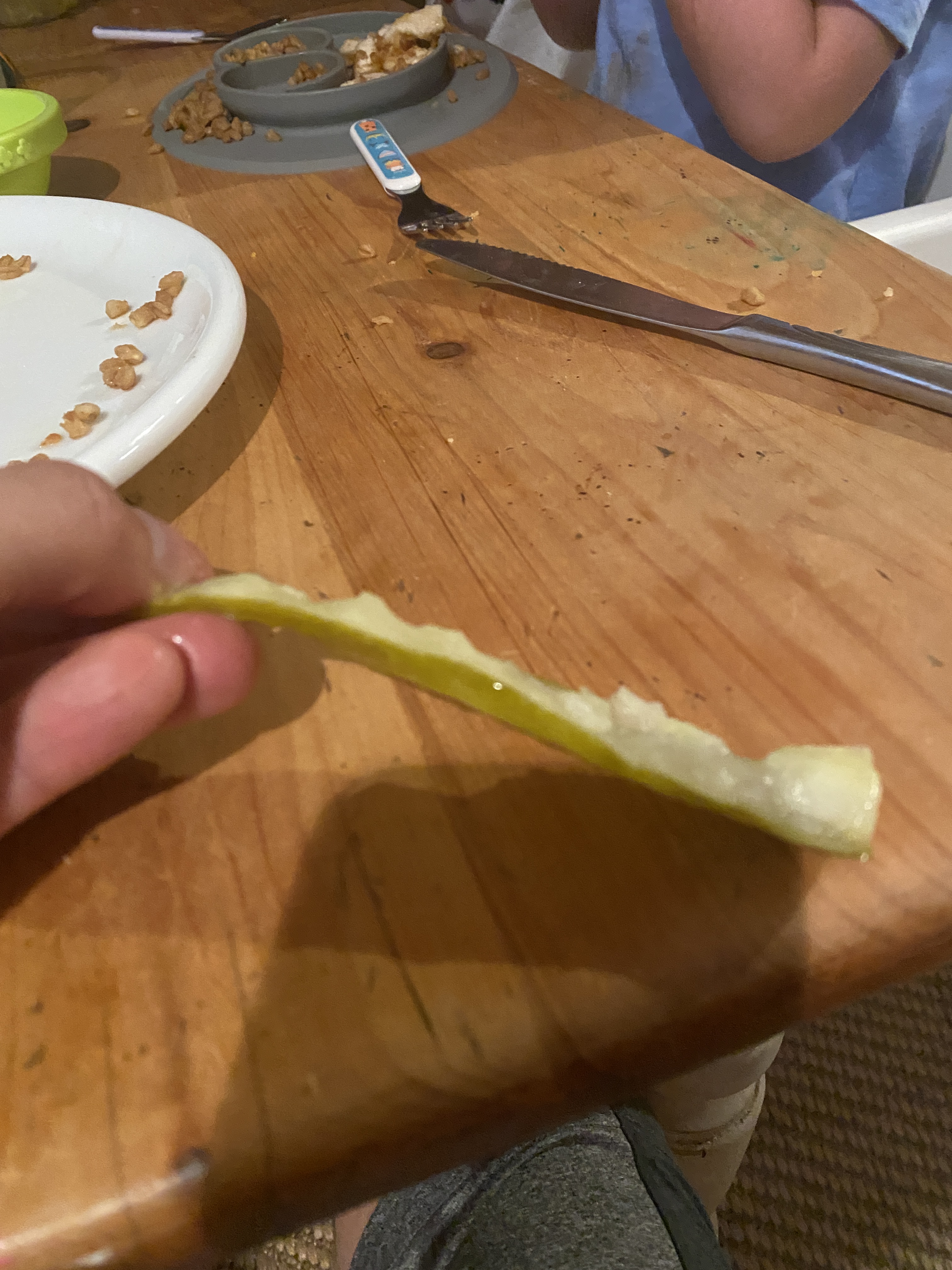 Elliot loves pickles, but he does not eat the skin. I am not sure why.