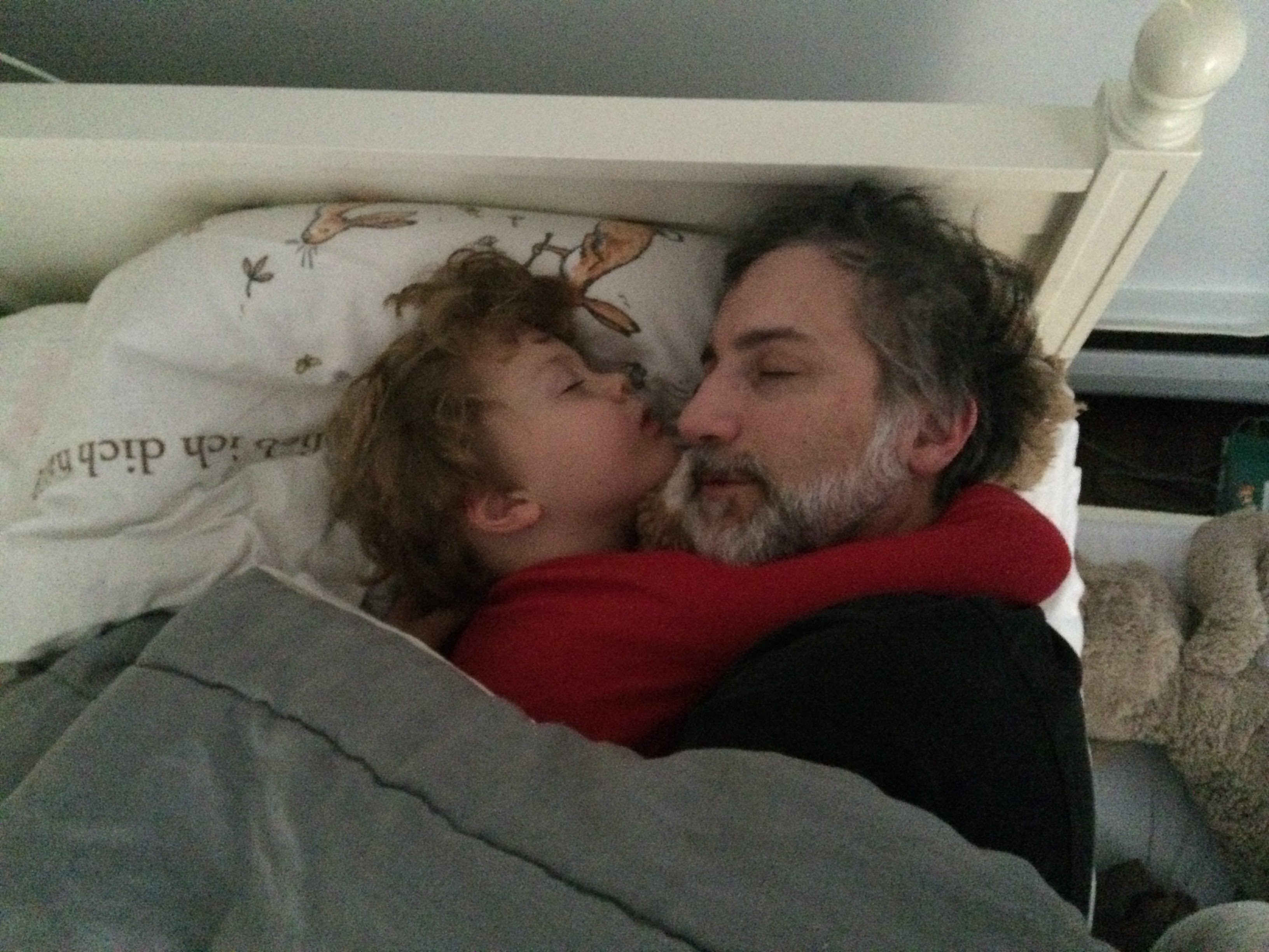 Max is age 6. He insisted that I sleep with him every night, at least until he fell asleep.
