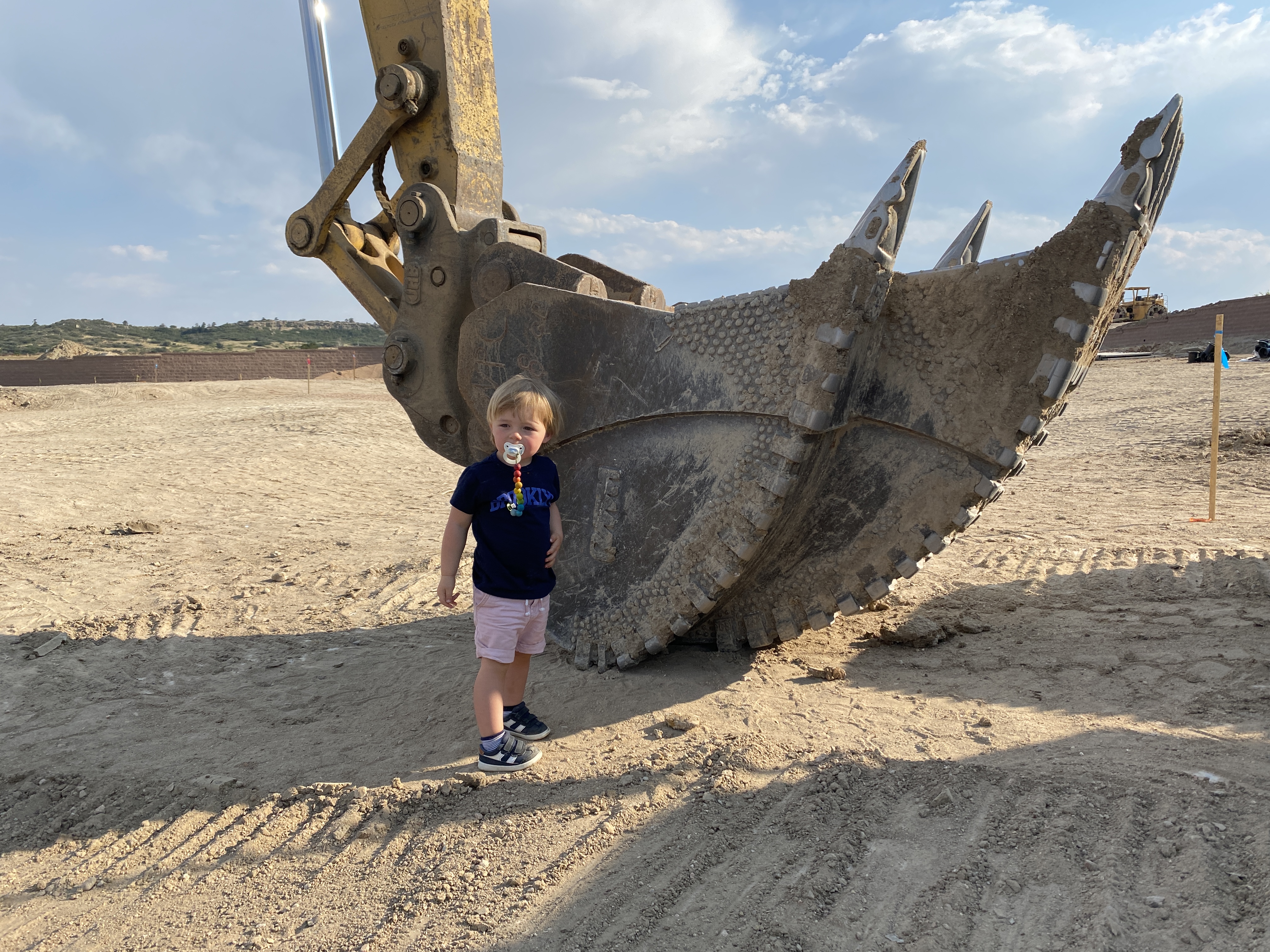 We visited an excavator after all the workers left. He LOVED it. I put Elliot in the driving seat. He wanted to start the excavator — the keys were in the ignition. Of course we did not. It was very difficult to get him to leave. Afterwards, at home, Karolina was very upset that I did that, and made me promise not to do it again.