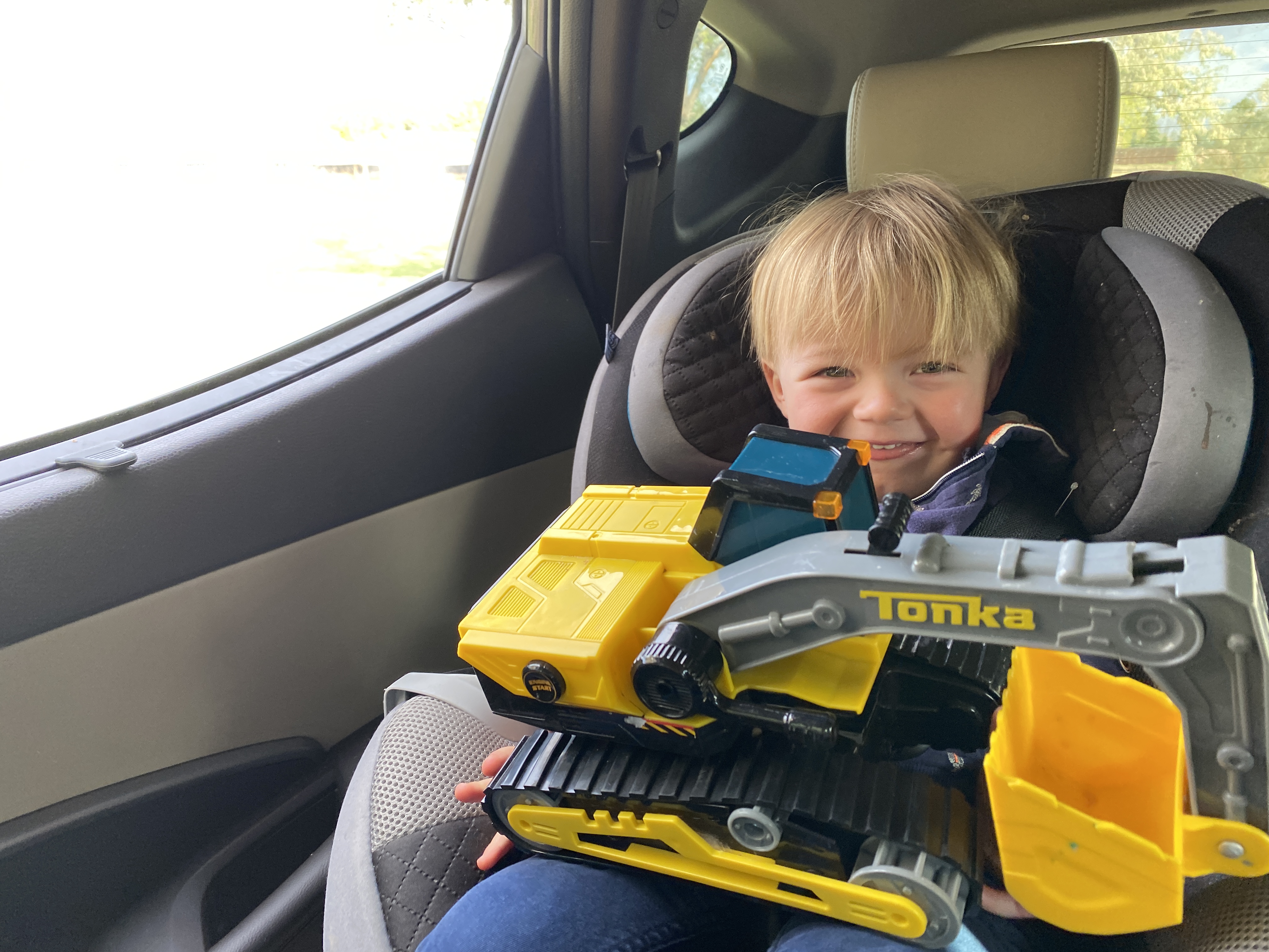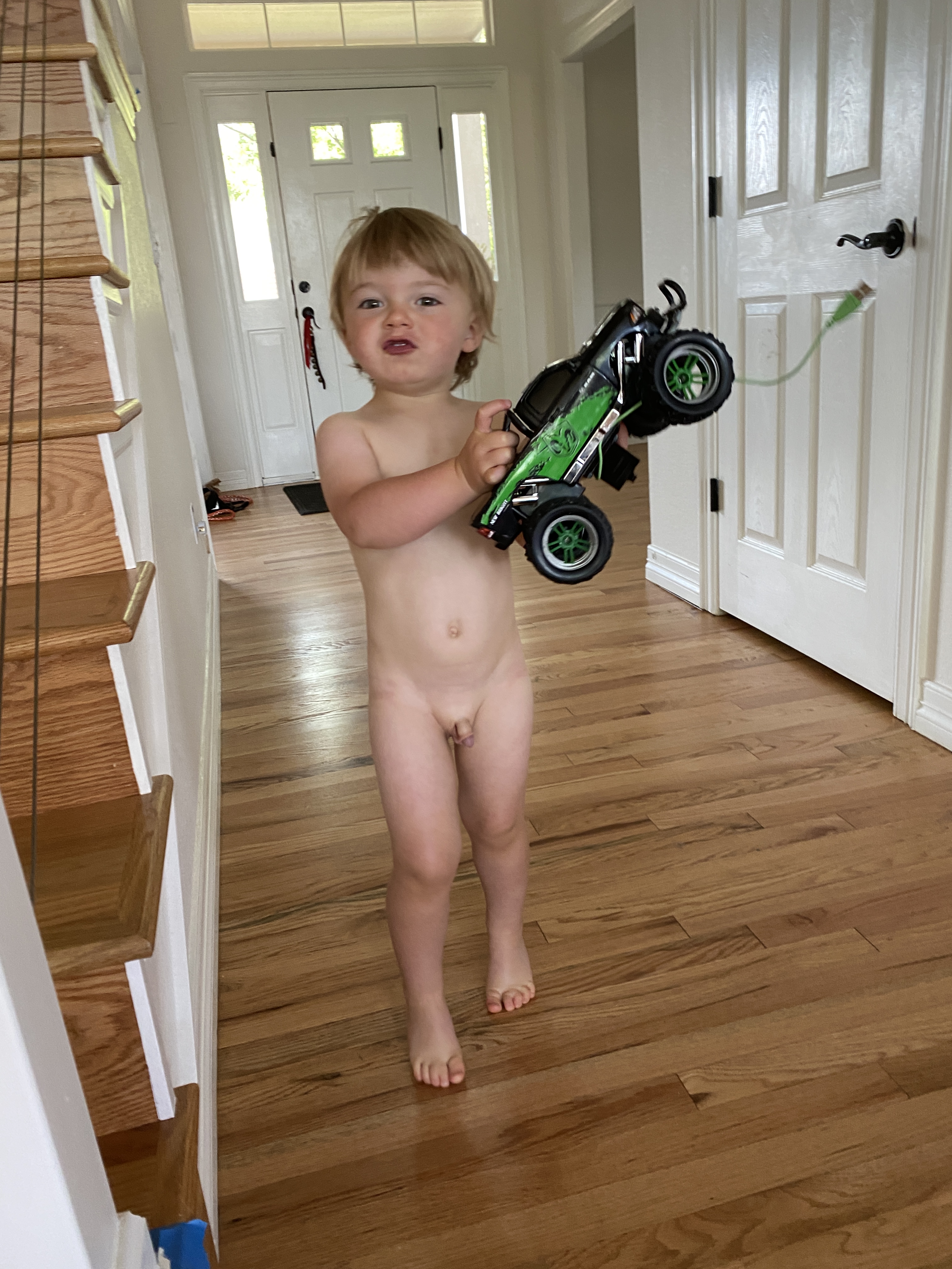 Yesterday, at Walmart, we went through the toy section on the way to by a bike with no pedals (there weren’t any left). He latched onto a monster truck with remote control and hasn’t dropped it since. He even slept with it last night and during his nap today.