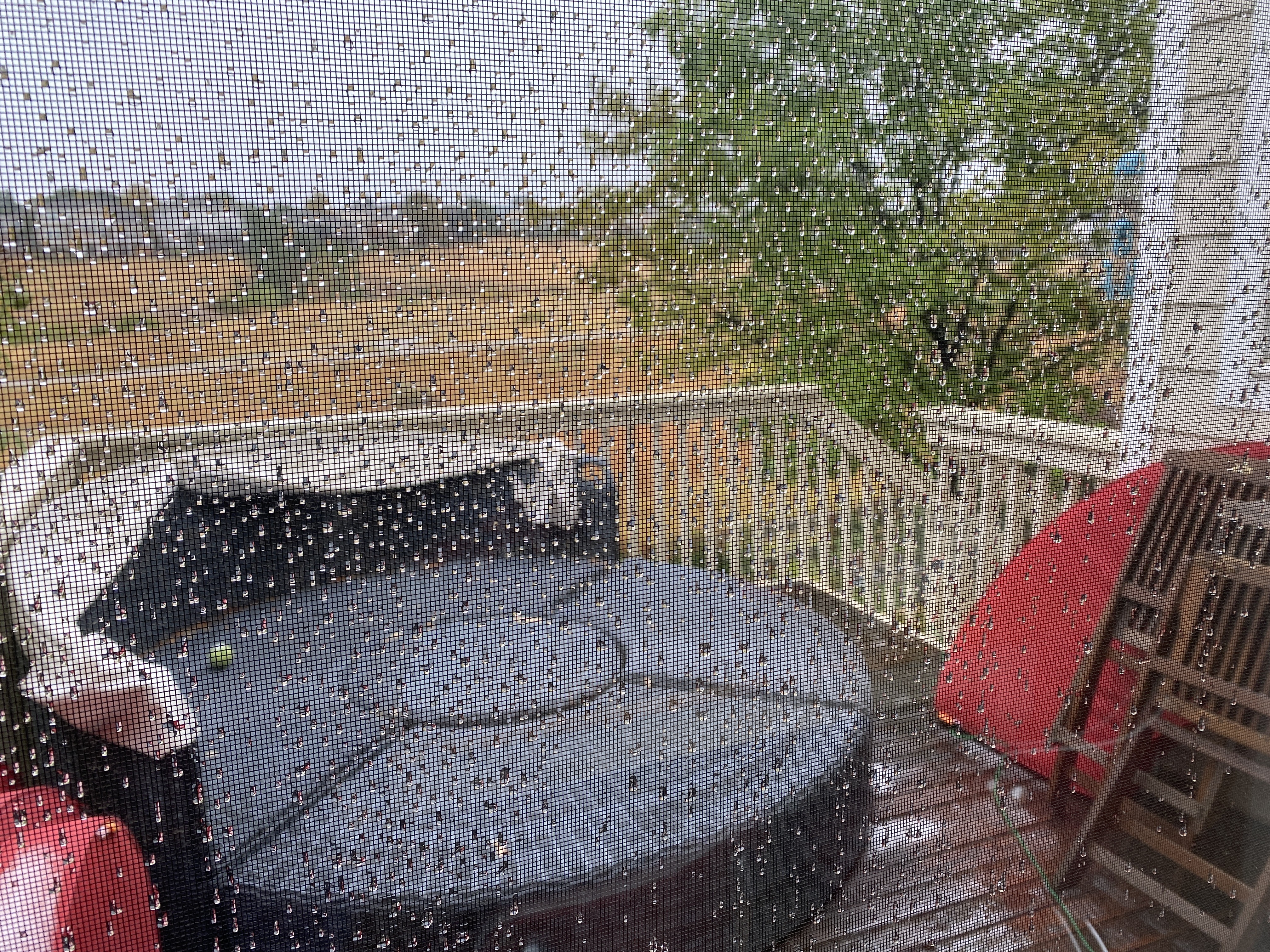 Elliot saw the rain this morning in the master bedroom and exclaimed, “Rain!” while pointing at the window.