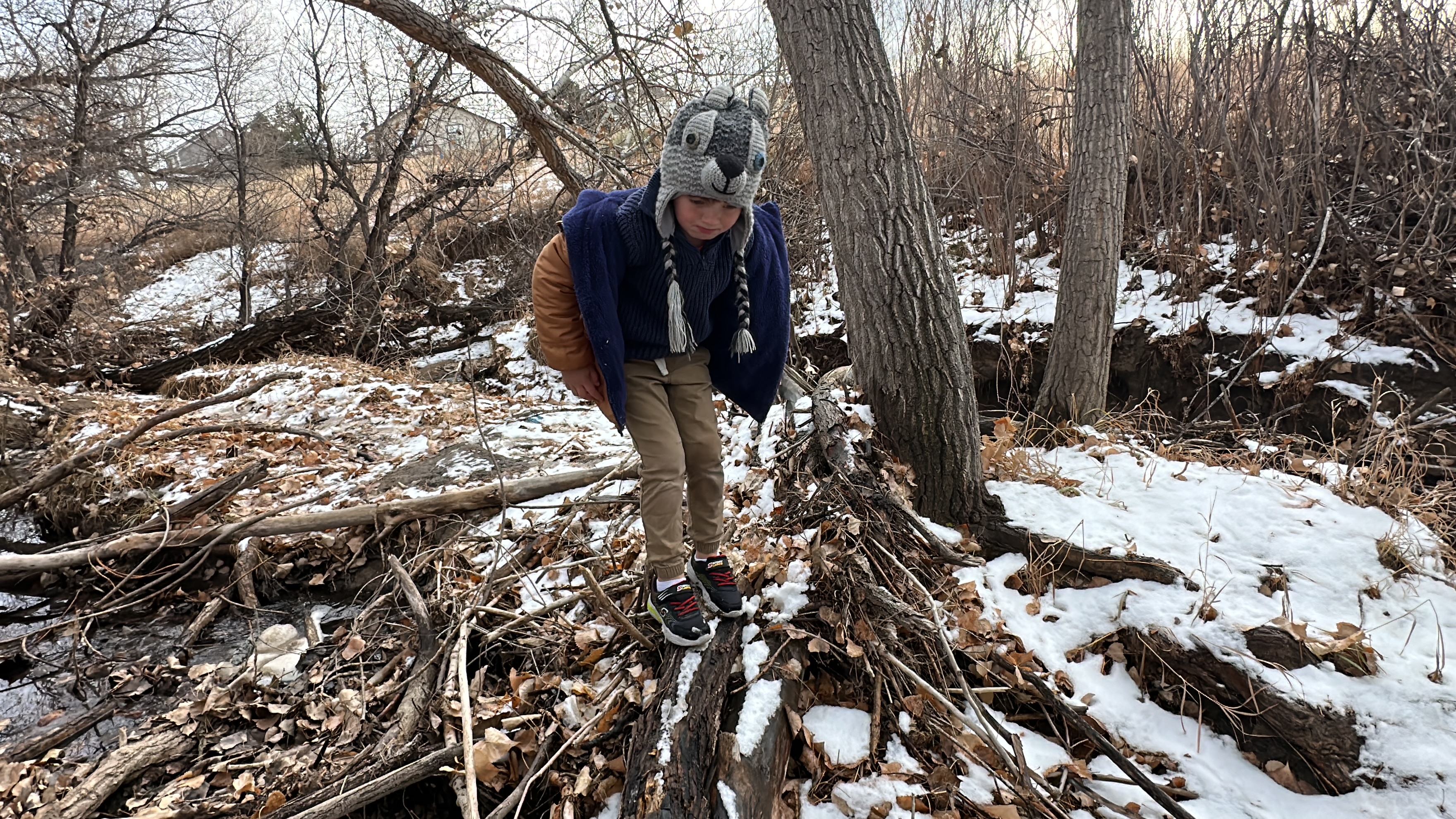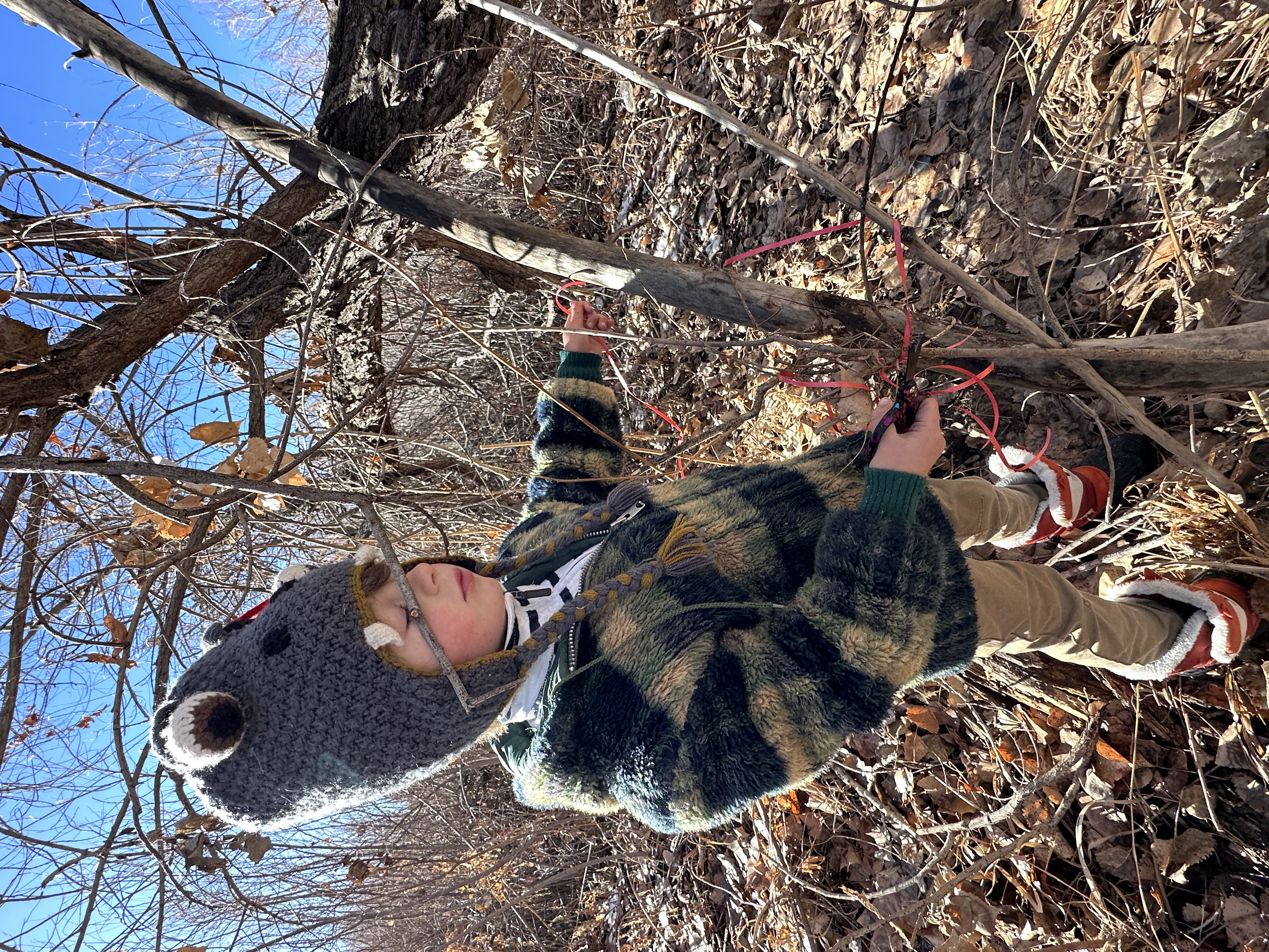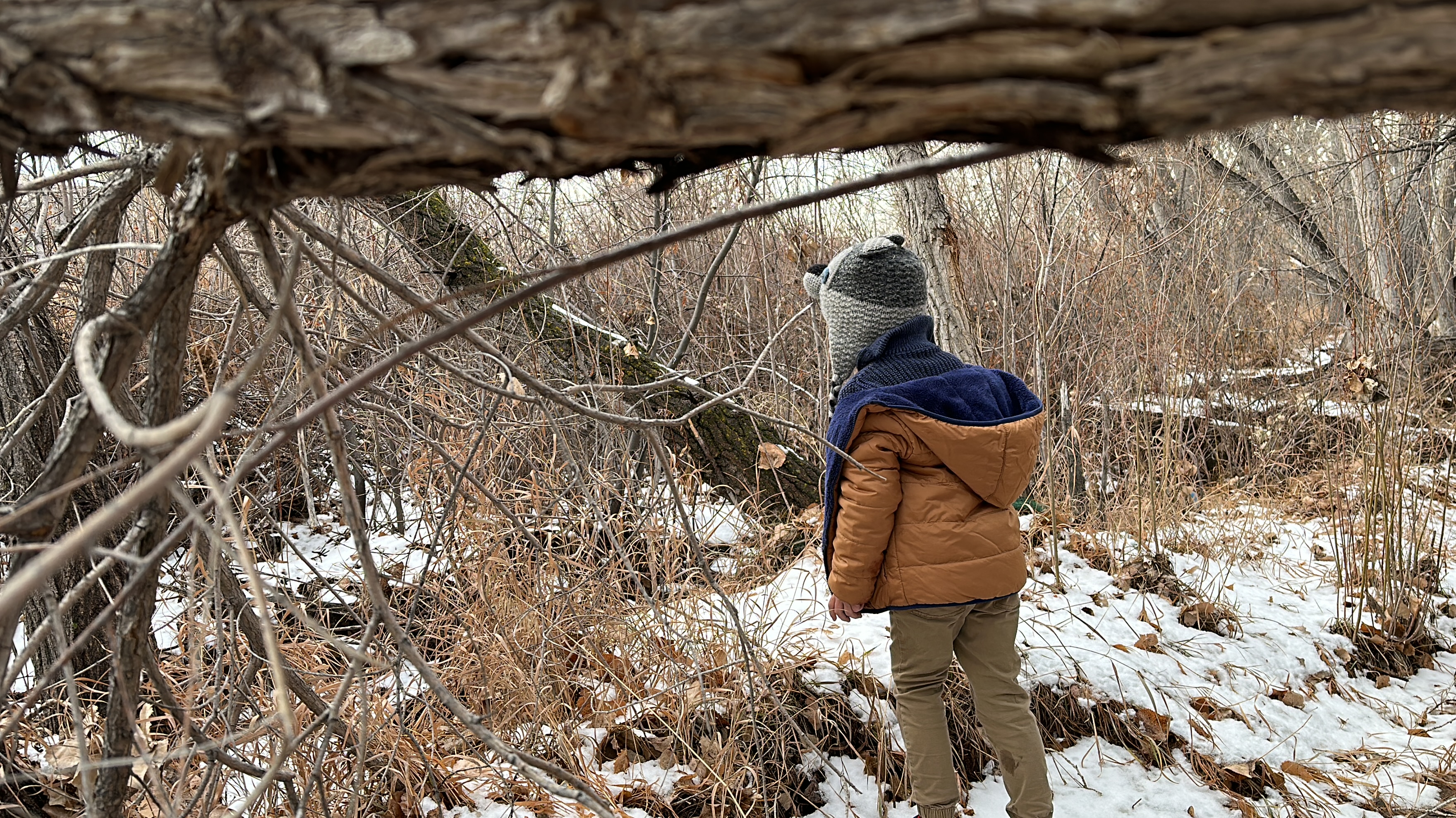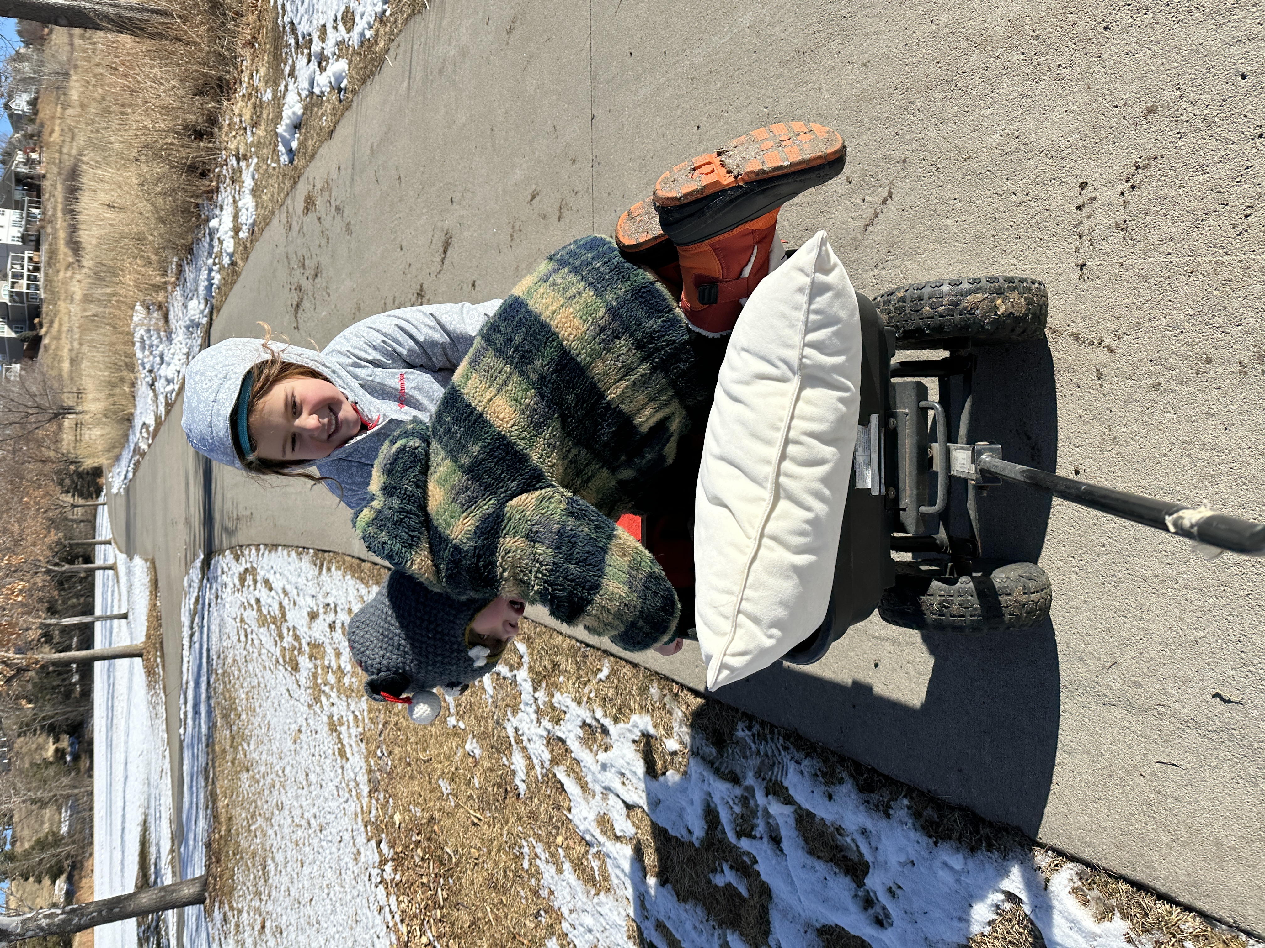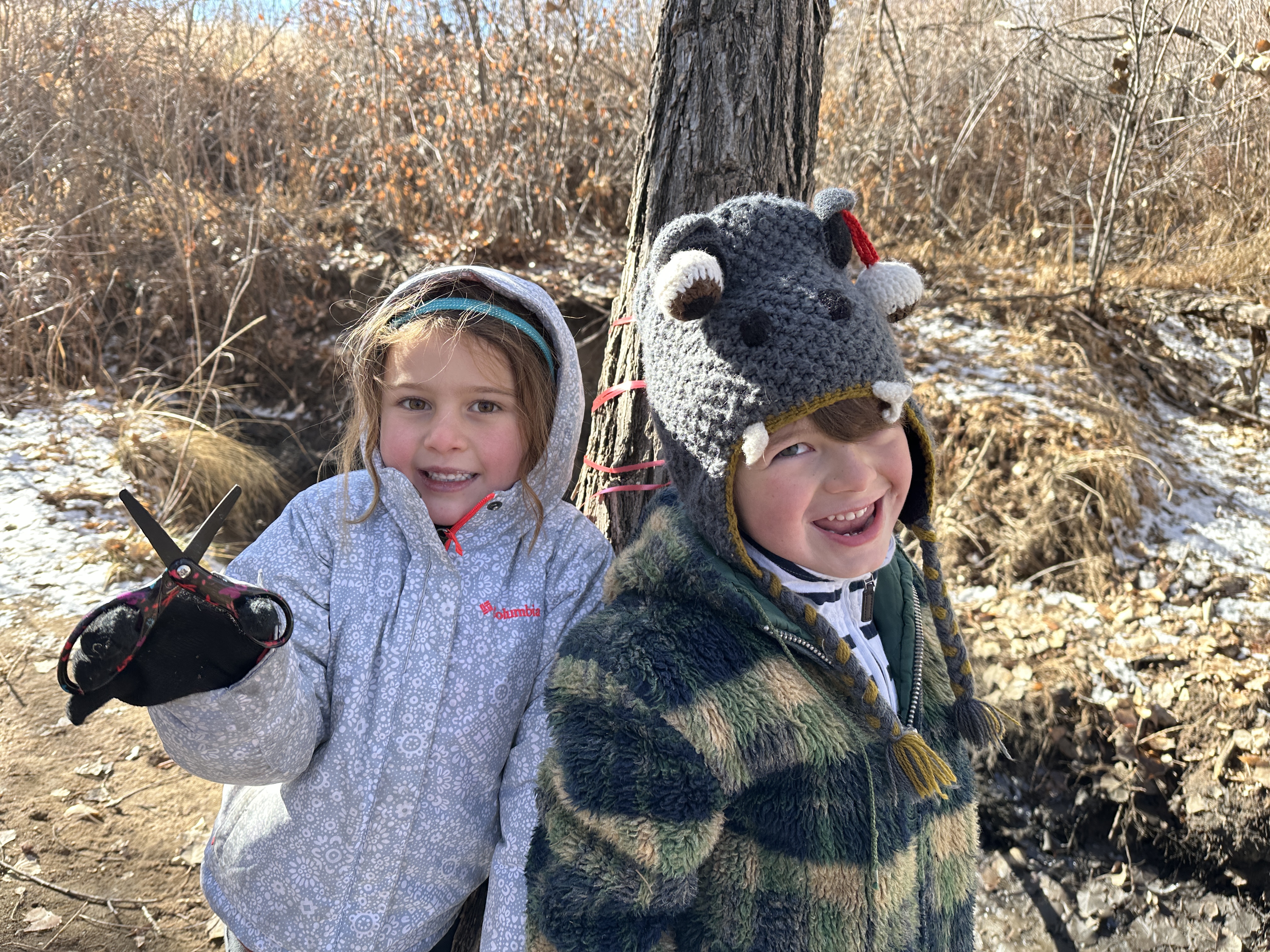 Jan 27, 2024. Kindergarten. Elliot and Maya Elster going to the cottonwood forest by wagon. Elliot is wearing my childhood coat I would guess from 1975 or 1976. Maya slept over the night before – Elliot’s first sleep-over! Both of them ended up sleeping with me! We all slept together.