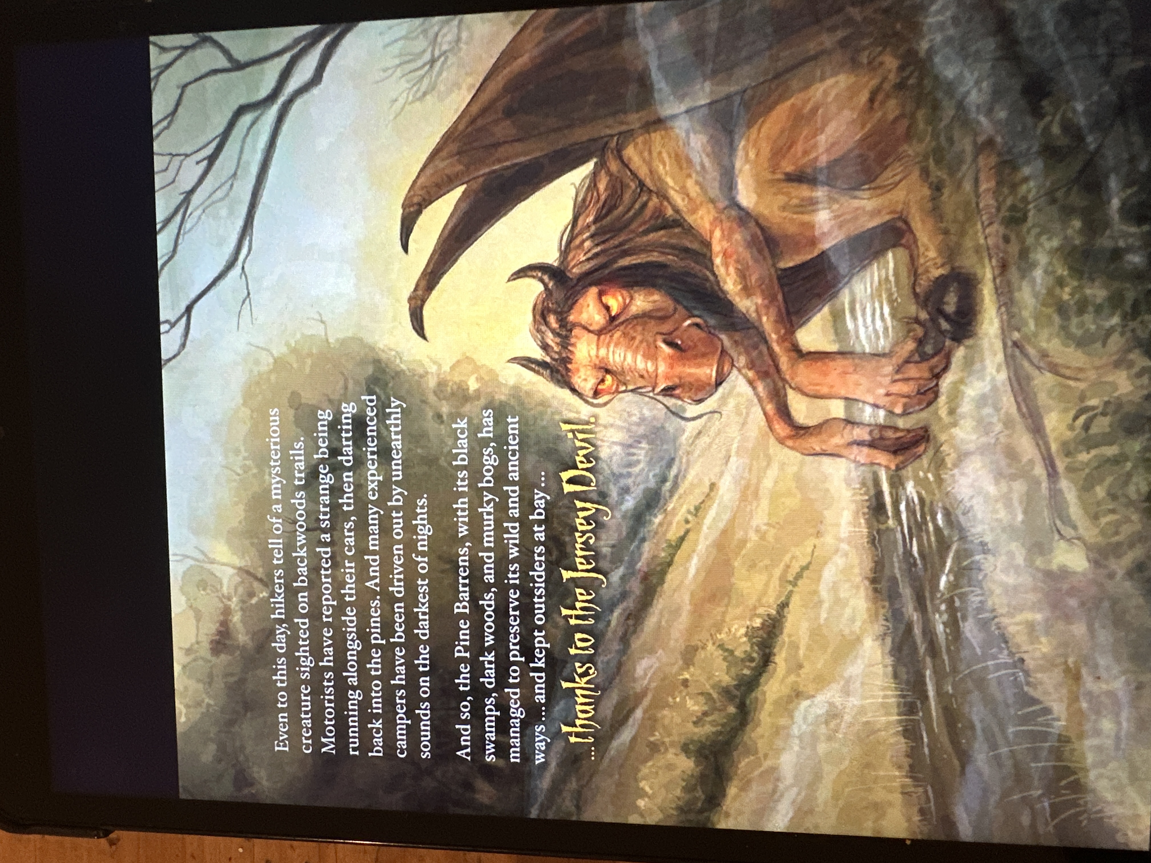 Elliot is still very much into the Jersey Devil. We watch videos about him, read books, discuss camping in the Pine Barrens at night — bringing my father’s giant flashlight, Bowie knife, and switchblades to protect ourselves. He wants to go there with my friend Eric, like we did last summer (although we did not camp there).