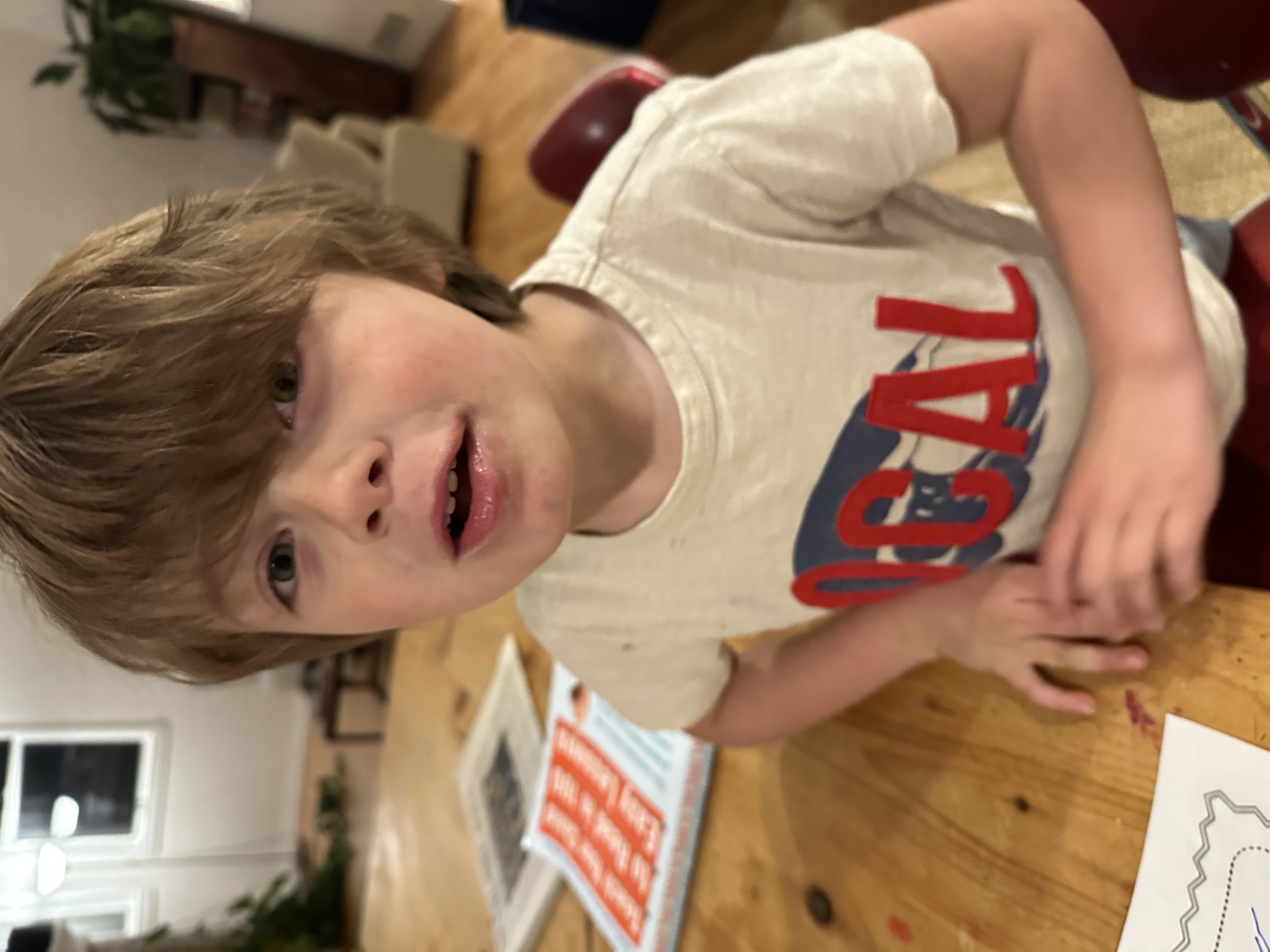 Age 5. While driving to school, a song on Spotify came on called “Heaven” by George & Jonathan. I told Elliot the title, and said I didn’t know the song.
