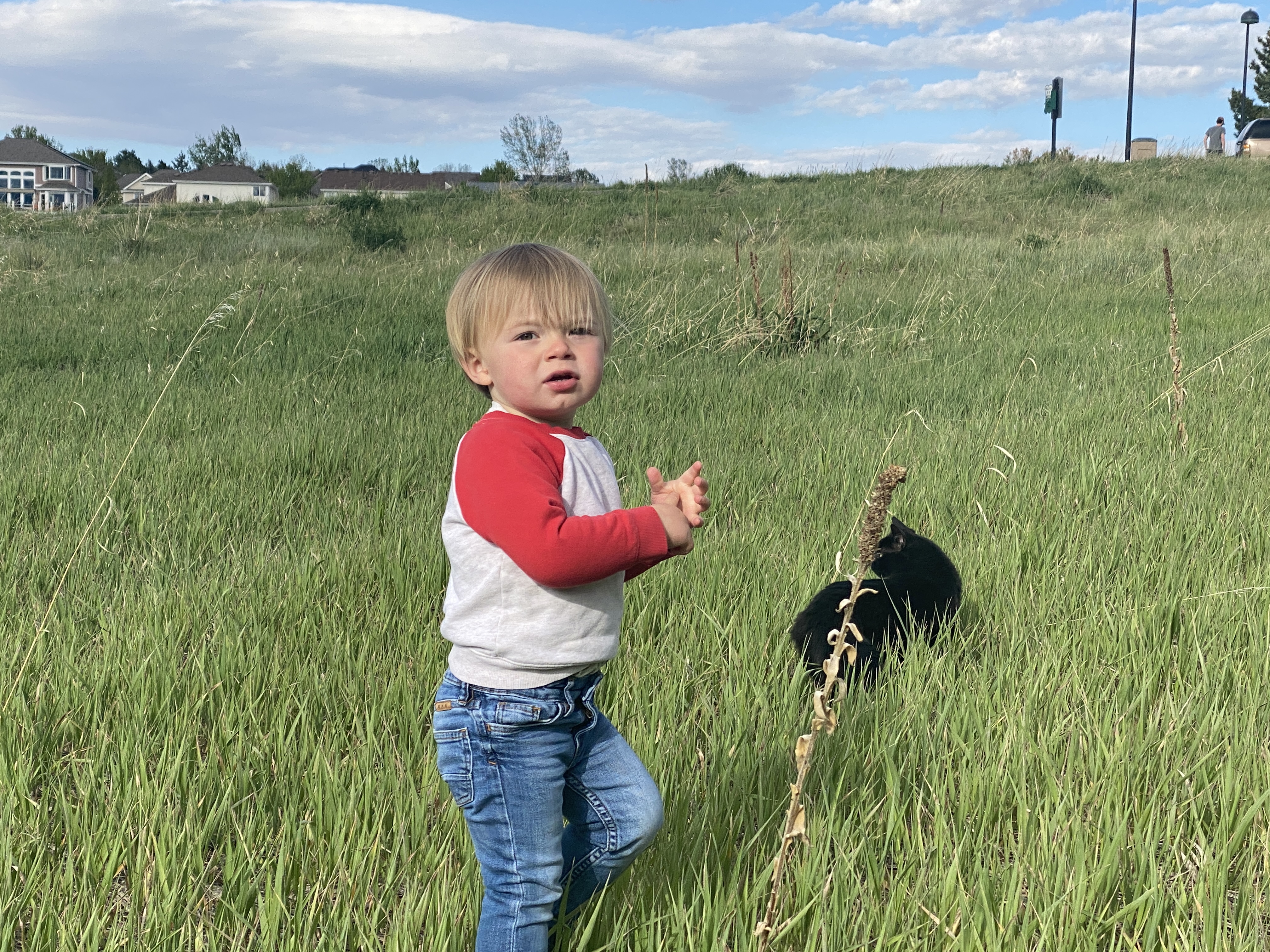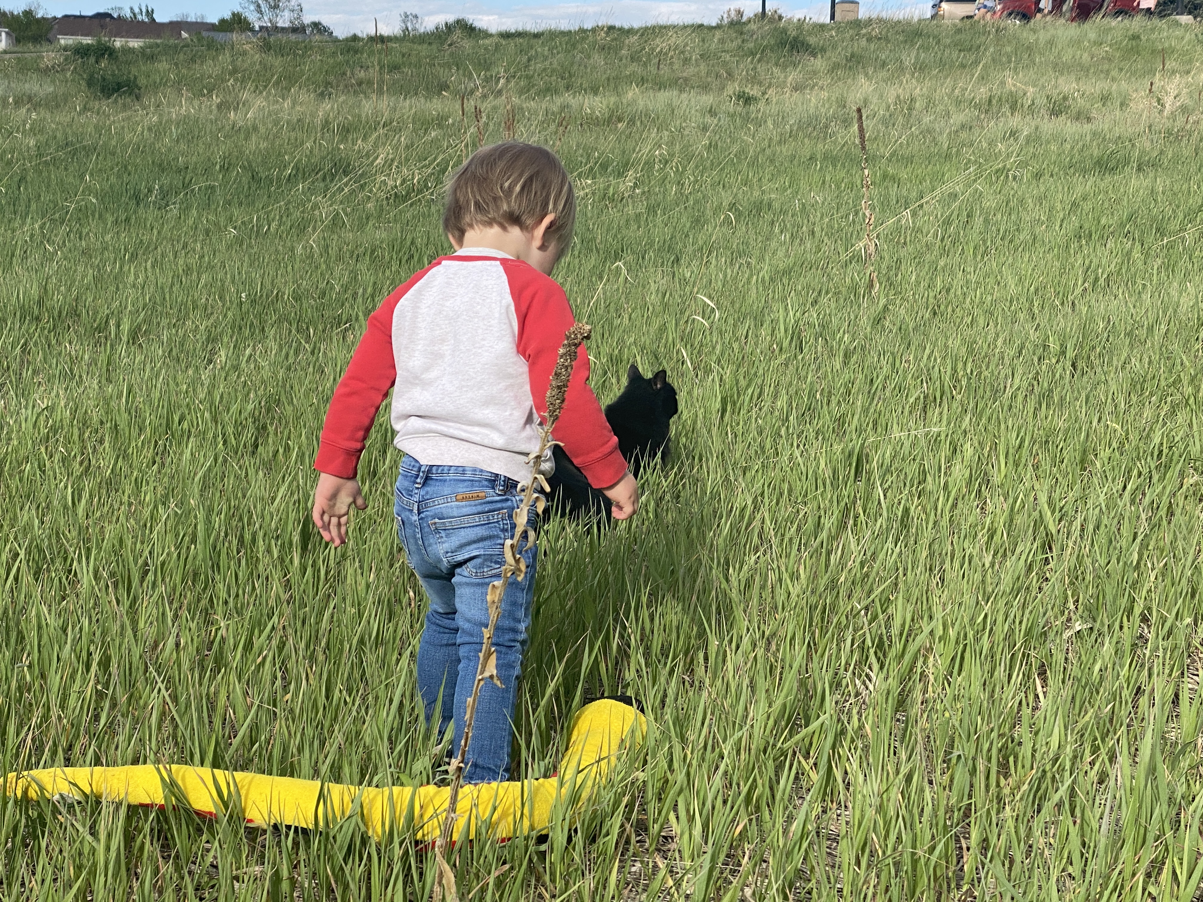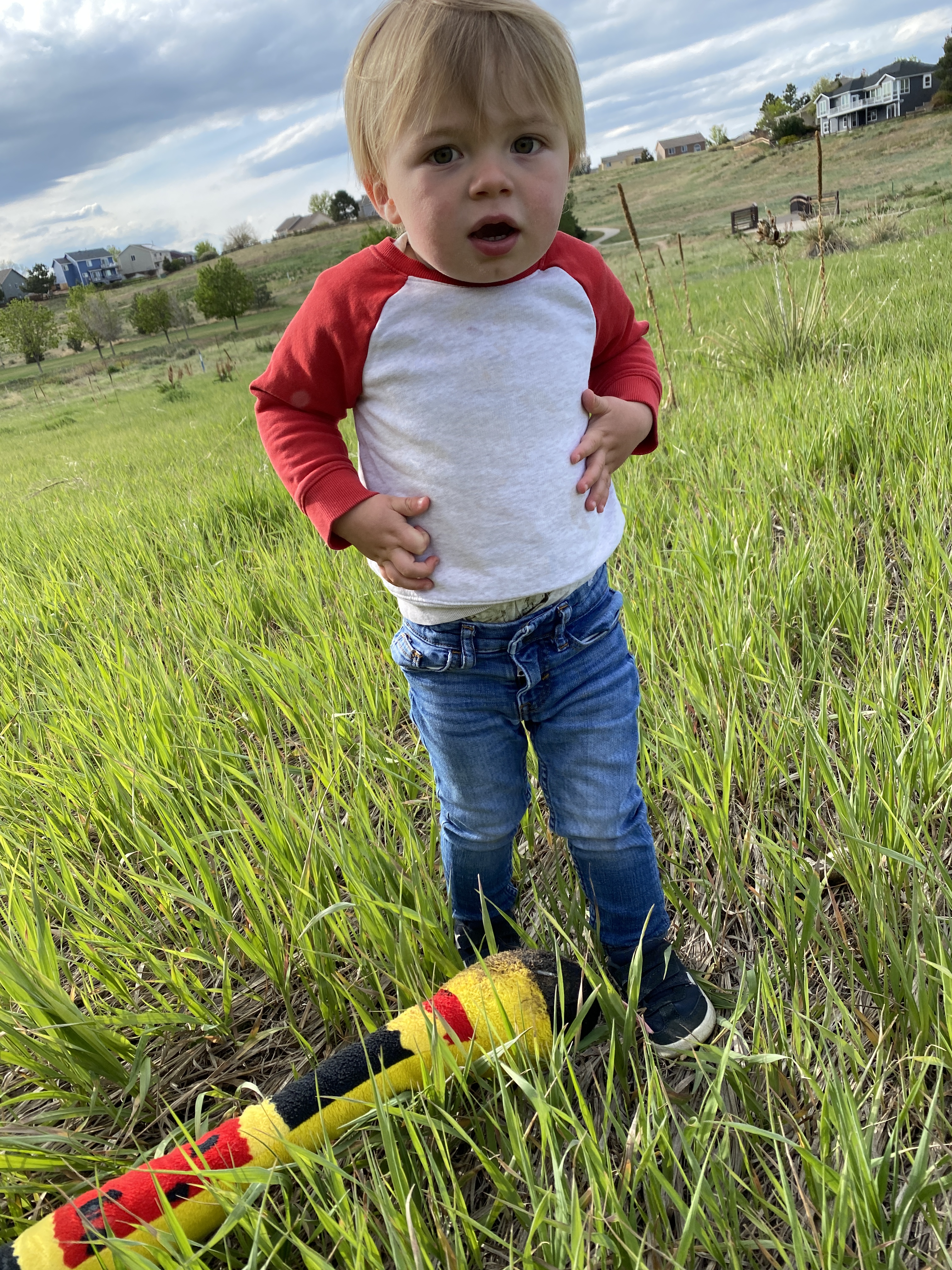 A little while later, Elliot had grabbed Max’s stuffy snake and was outside pointing to the field. We went into the field and spent the next 20 minutes looking for the snake. Full of surprise and wonder, we would push away small bushes or grasses hoping for another glimpse.